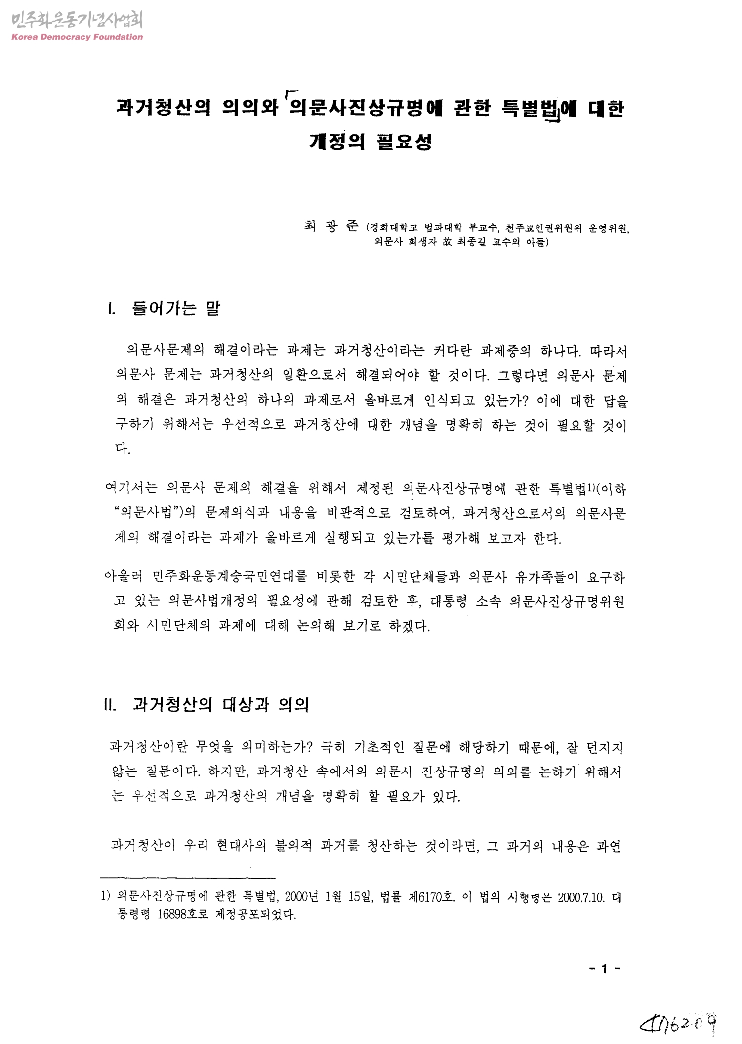 과거청산의 의의와 의문사진상규명에 관한 특별법에 대한 개정의 필요성