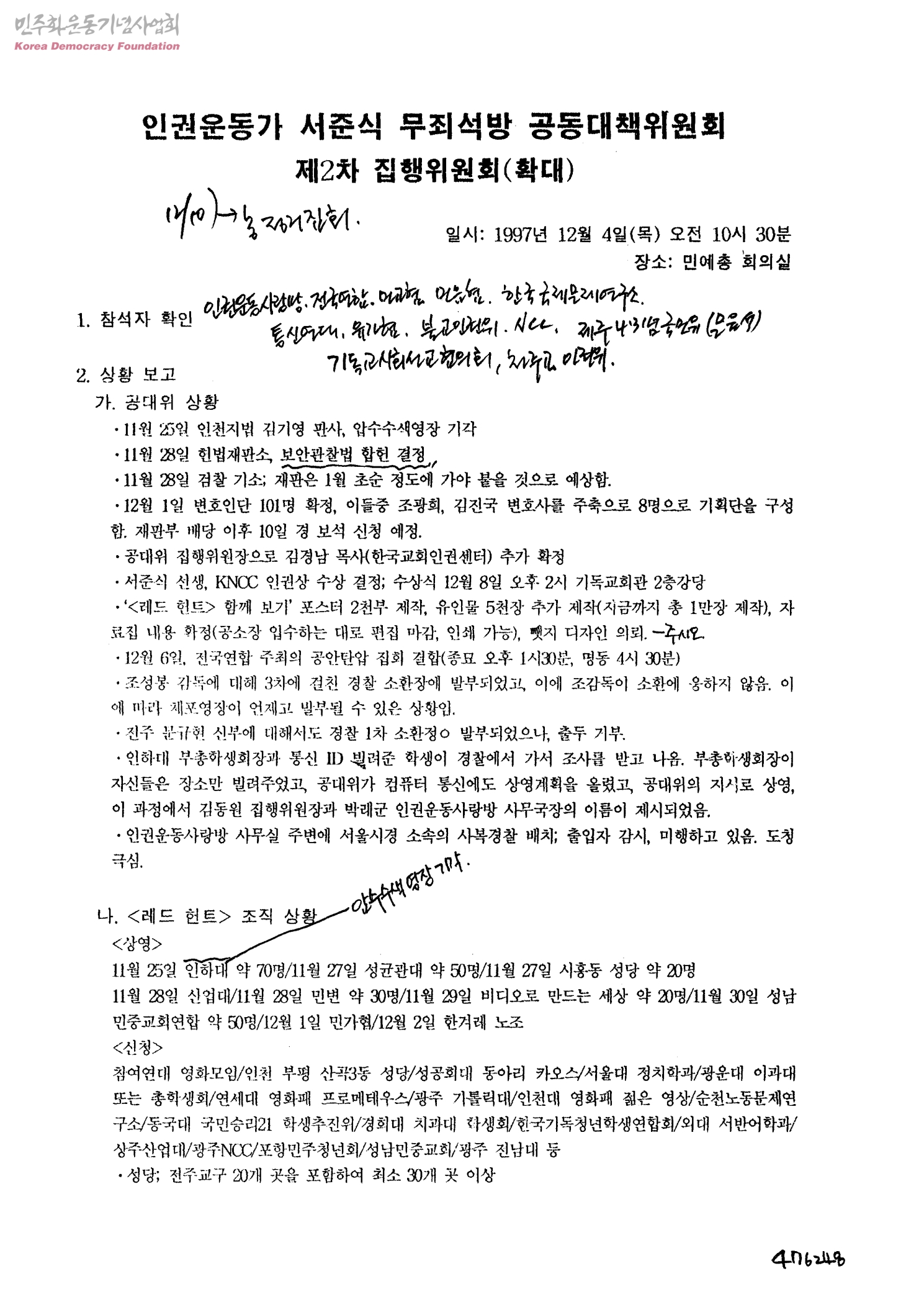인권운동가 서준식 무죄석방 공동대책위원회 제2차 집행위원회(확대)