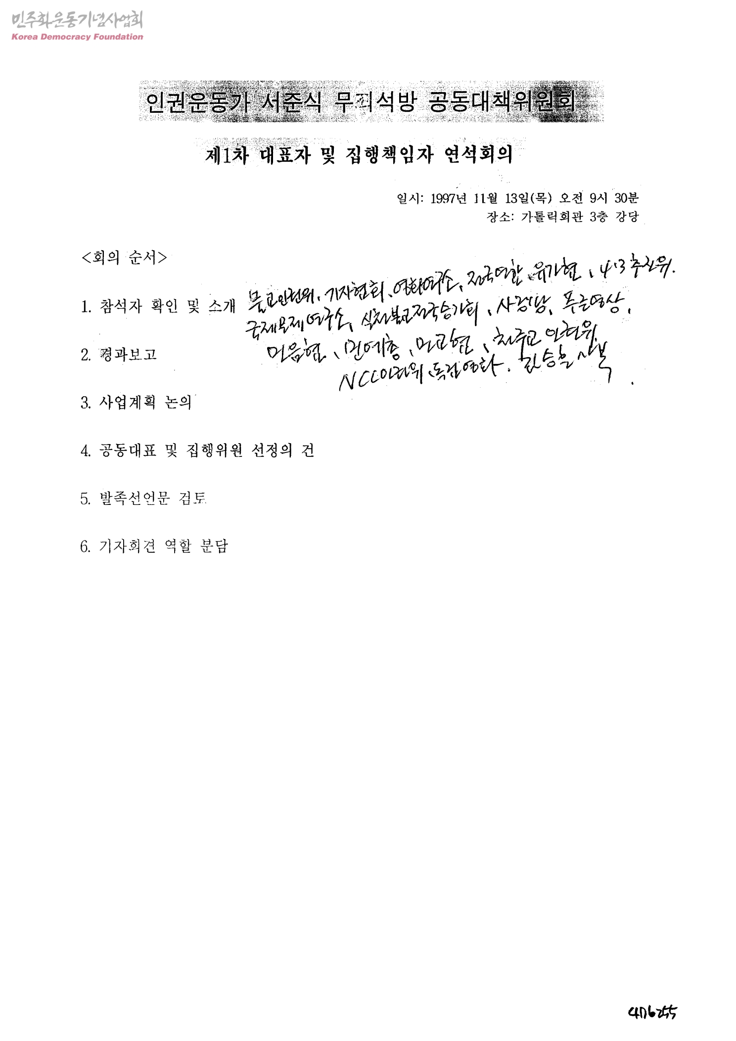 인권운동가 서준식 무죄석방 공동대책위원회 제1차 대표자 및 집행책임자 연석회의