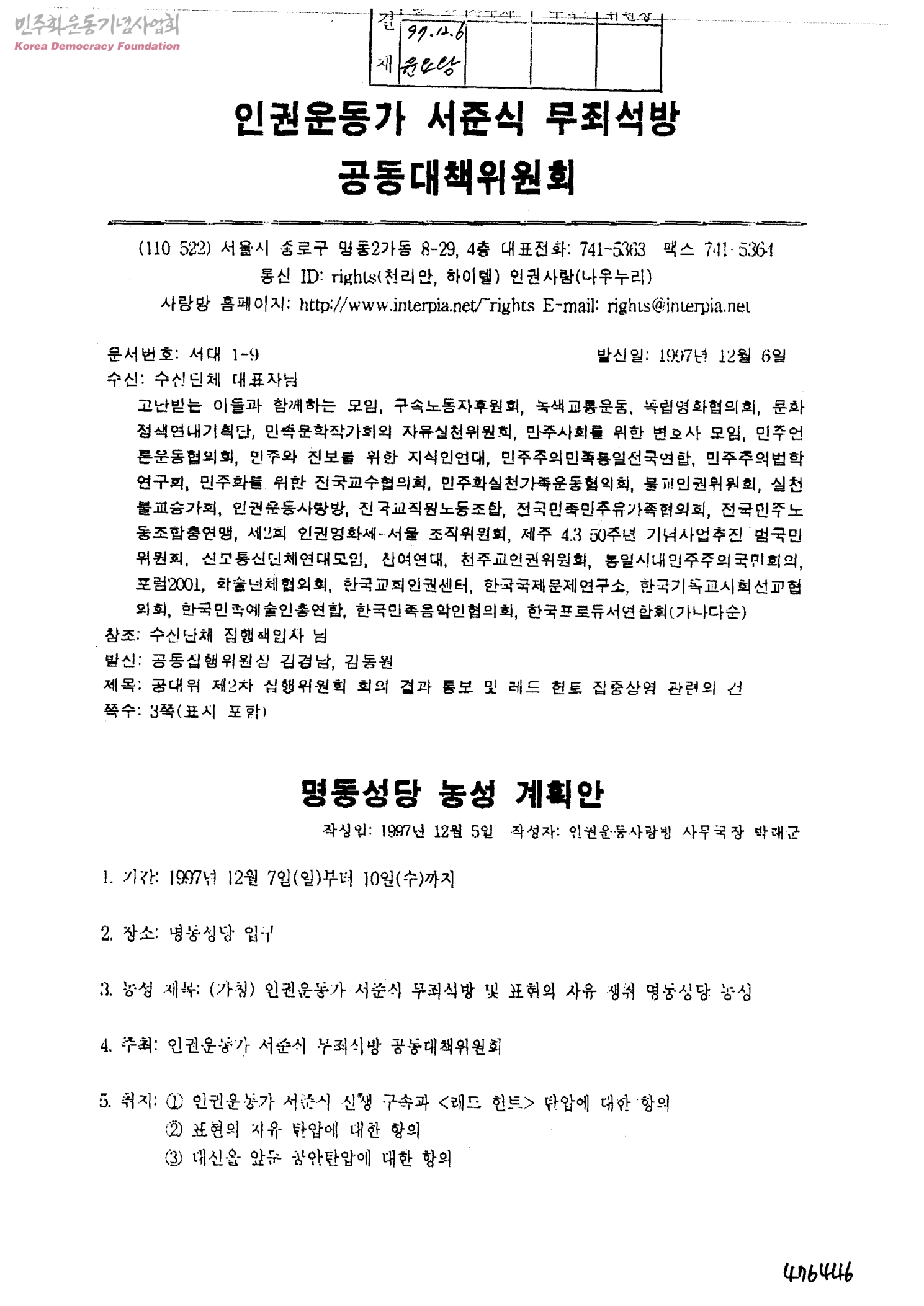 - 인권운동가서준식무죄석방공동대책위원회