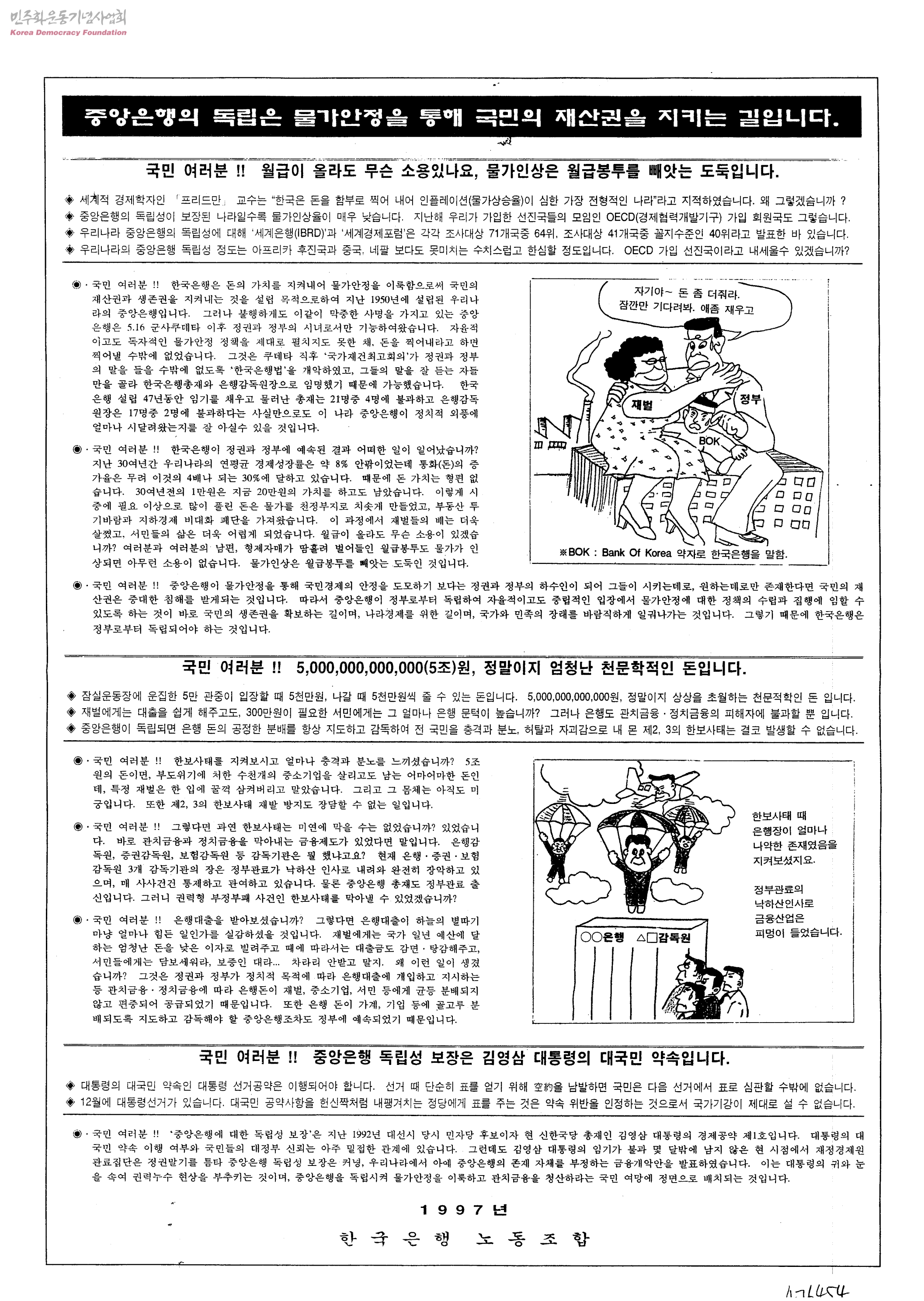 중앙은행의 독립은 물가안정을 통해 국민의 재산권을 지키는 길입니다