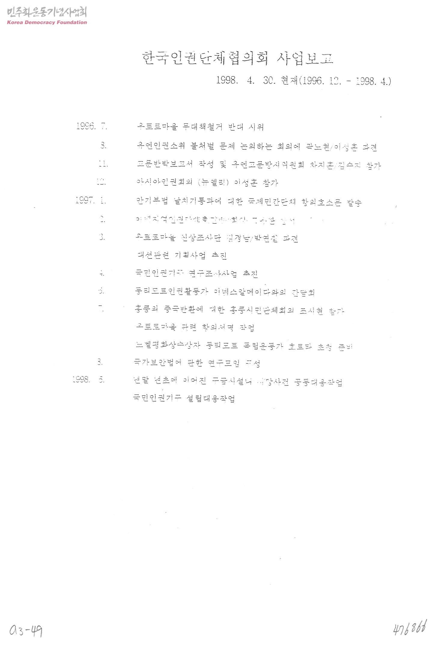 한국인권단체협의회 사업보고(1996-12~1998-04)