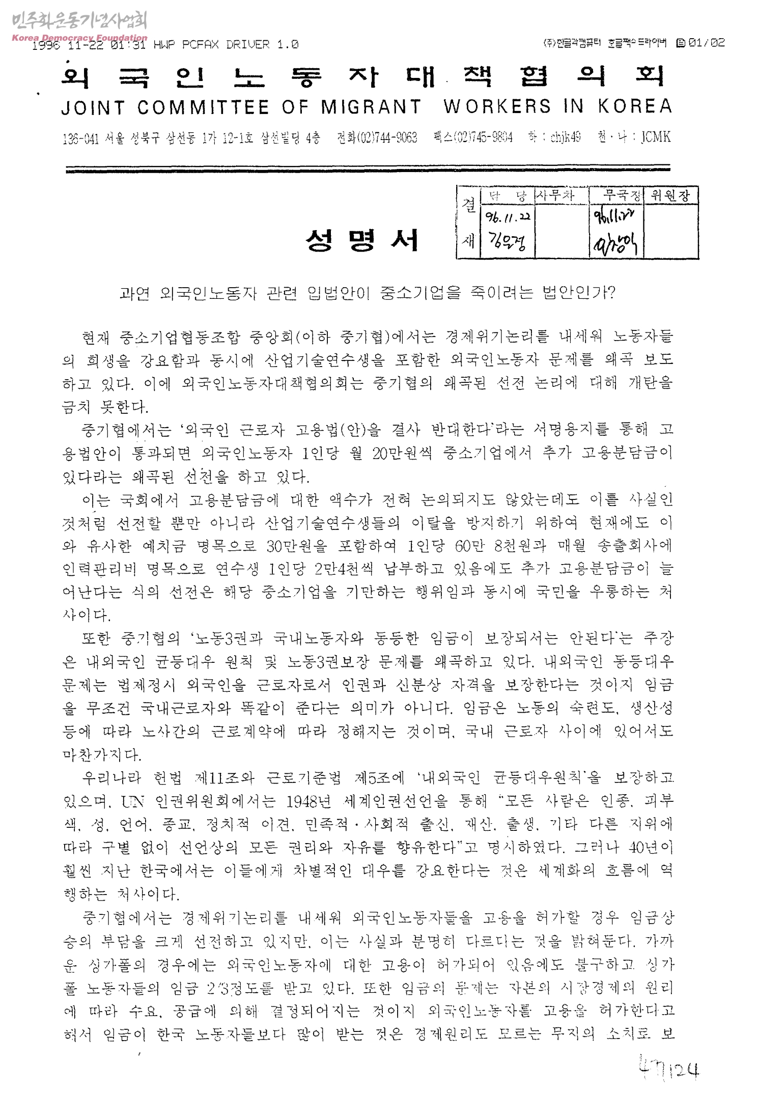 성명서-과연 외국인노동자 관련 입법안이 중소기업을 죽이려는 법안인가?