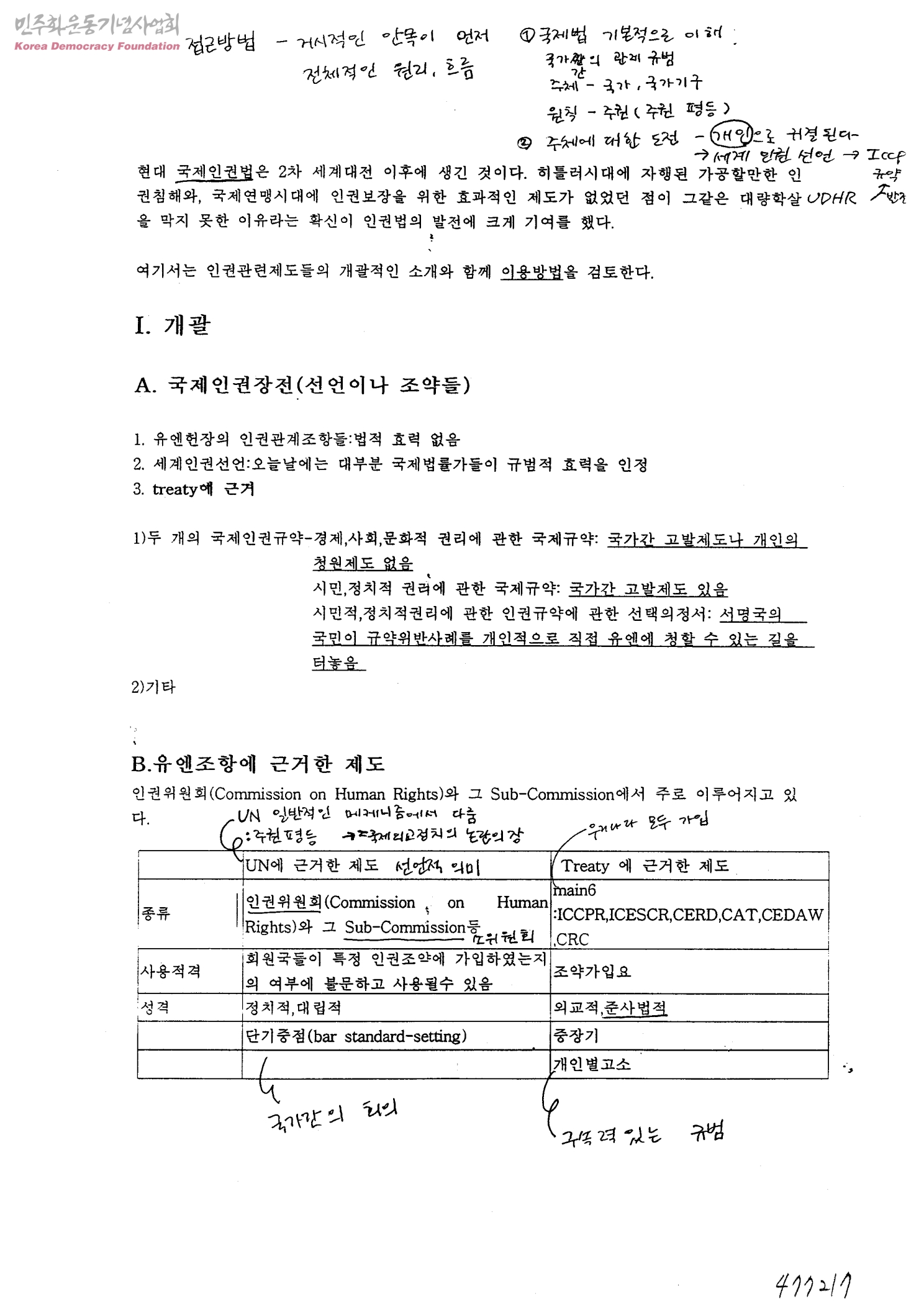 [인권관련제도들의 개괄적인 소개와 이용방법]