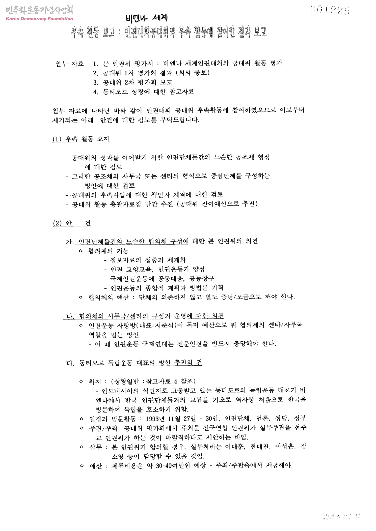 - 첨부:비엔나 세계인권대회와 공대위 활동평가