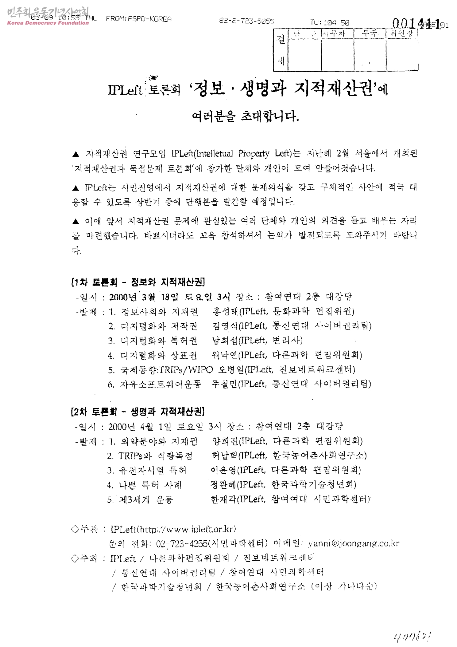 IPLeft 토론회-'정보·생명과 지적재산권'에 여러분을 초대합니다.