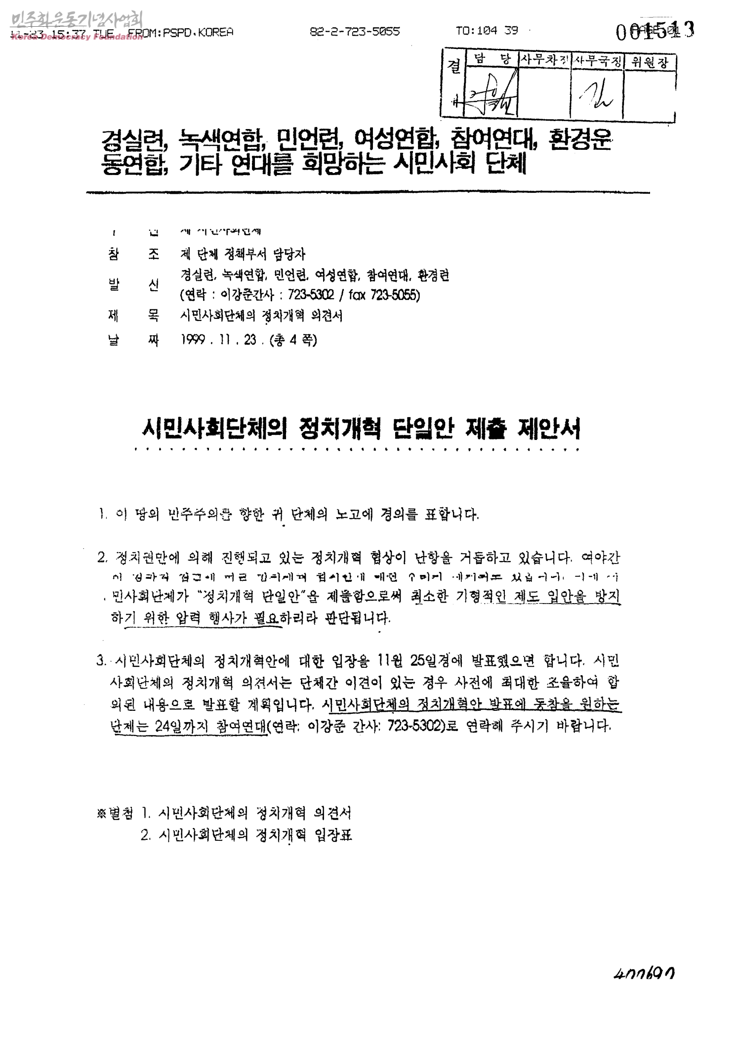 [시민사회단체의 정치개혁에 관련된 문서들]