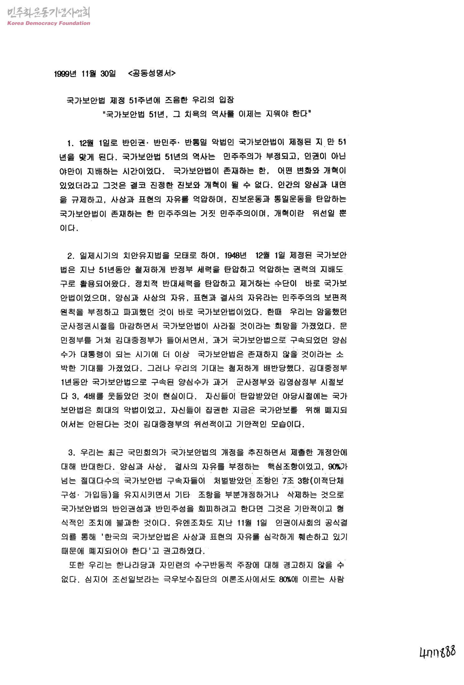 국가보안법 제정 51주년에 즈음한 우리의 입장-국가보안법 51년, 그 치욕의 역사를 이제는 지워야 한다.