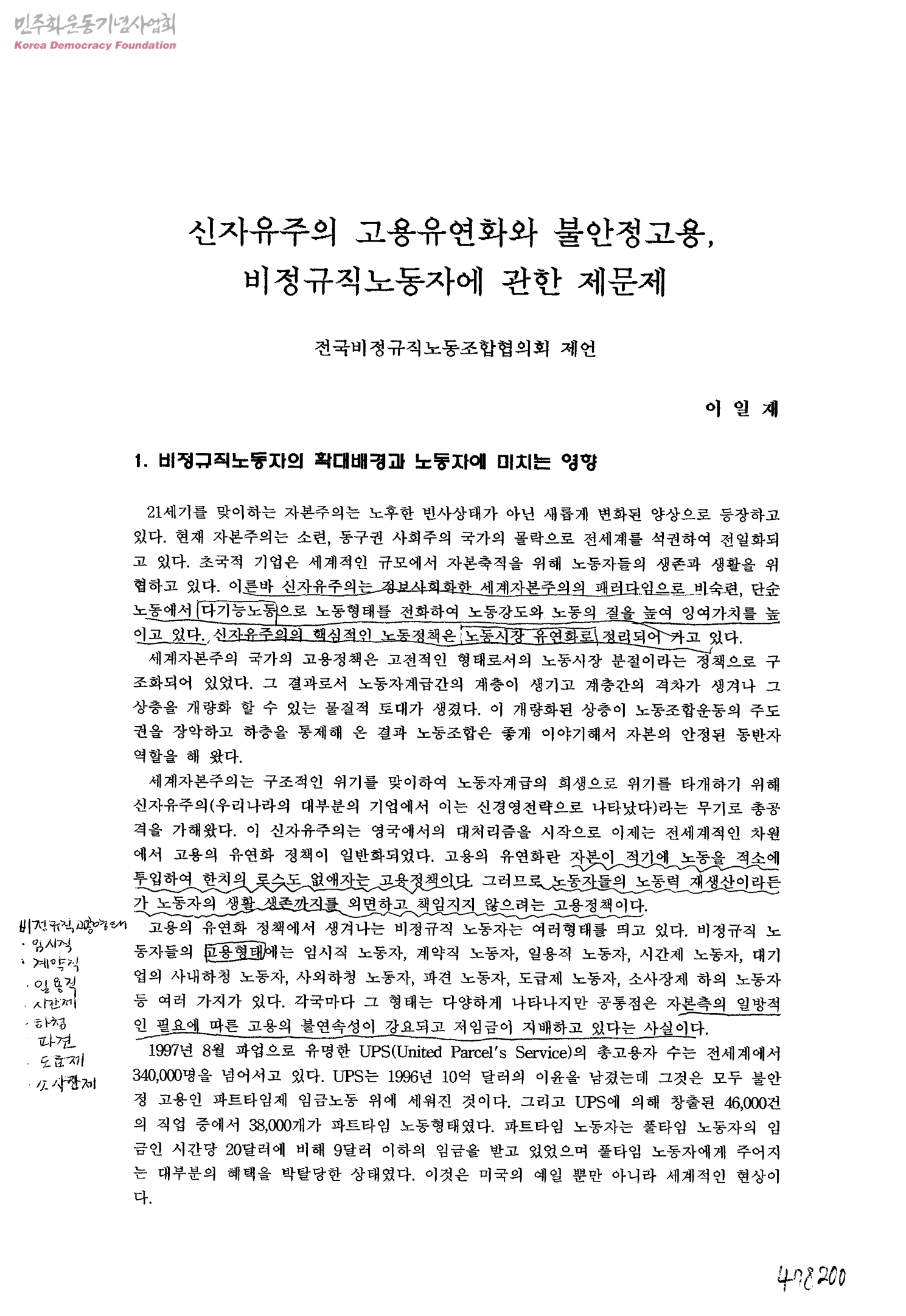 신자유주의 고용유연화와 불안정고용, 비정규직노동자에 관한 제문제-전국비정규직노동조합협의회 제언