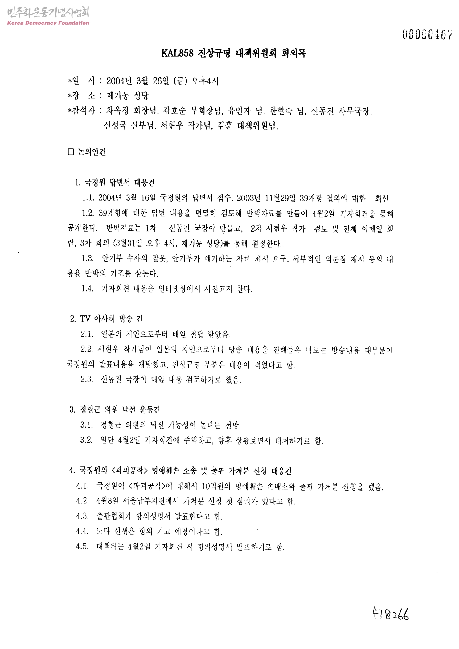 KAL858진상규명대책위원회 회의록