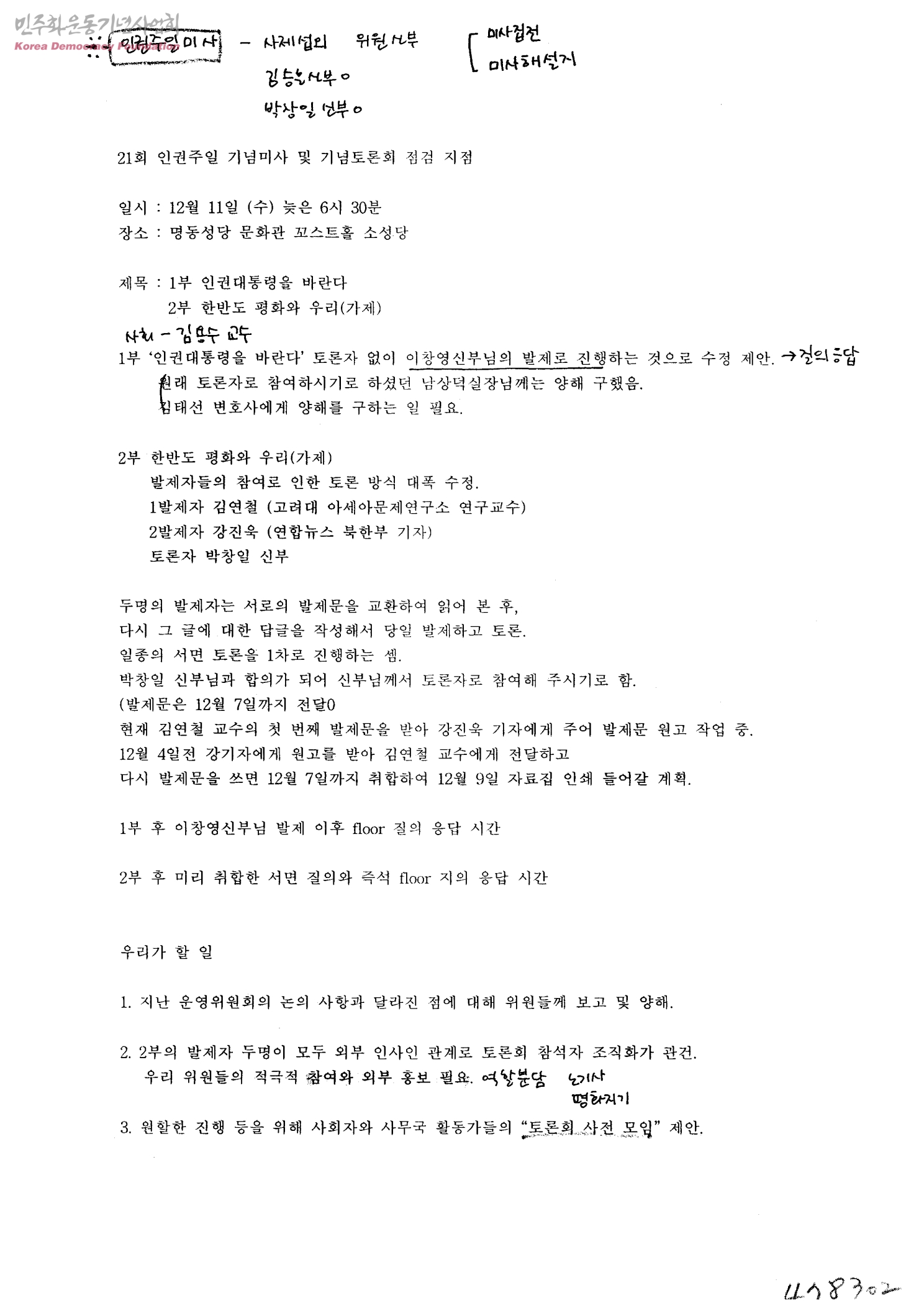 21회 인권주일 기념미사 및 기념토론회 점검 지점