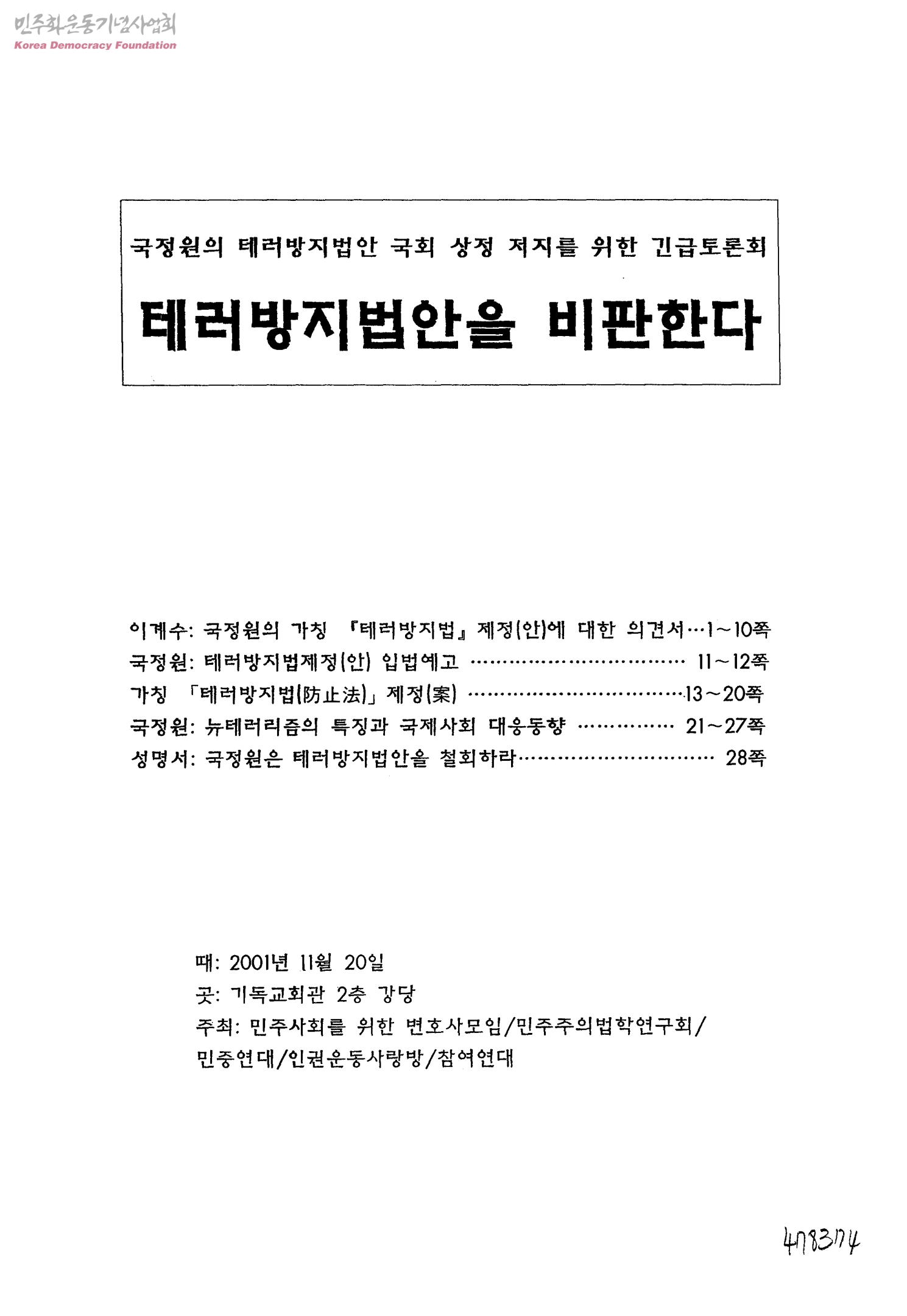 국정원의 테러방지법안 국회 사정 저지를 위한 긴급토론회-테러방지법안을 비판한다.