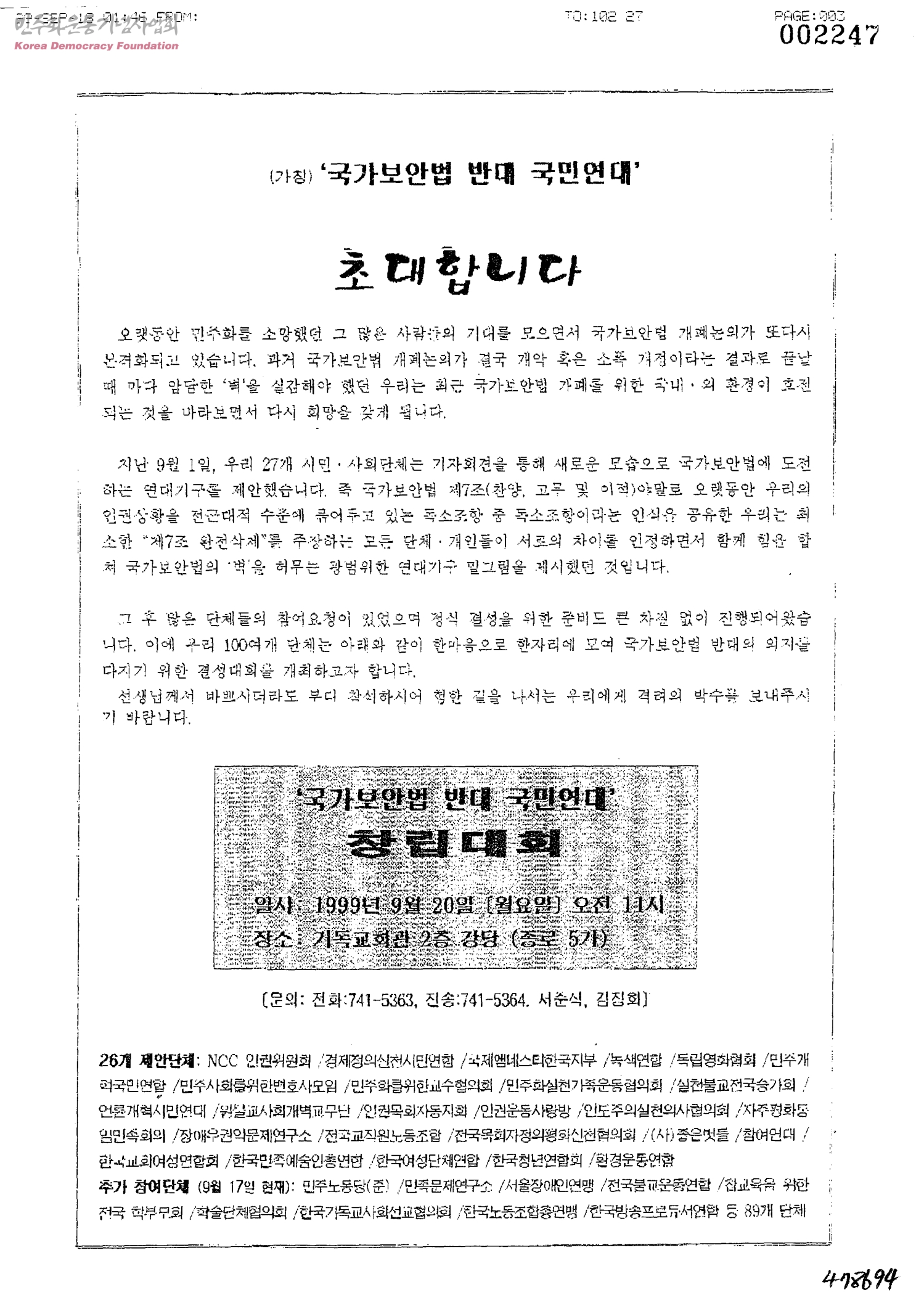 초대합니다['국가보안법 반대 국민연대 창립대회]