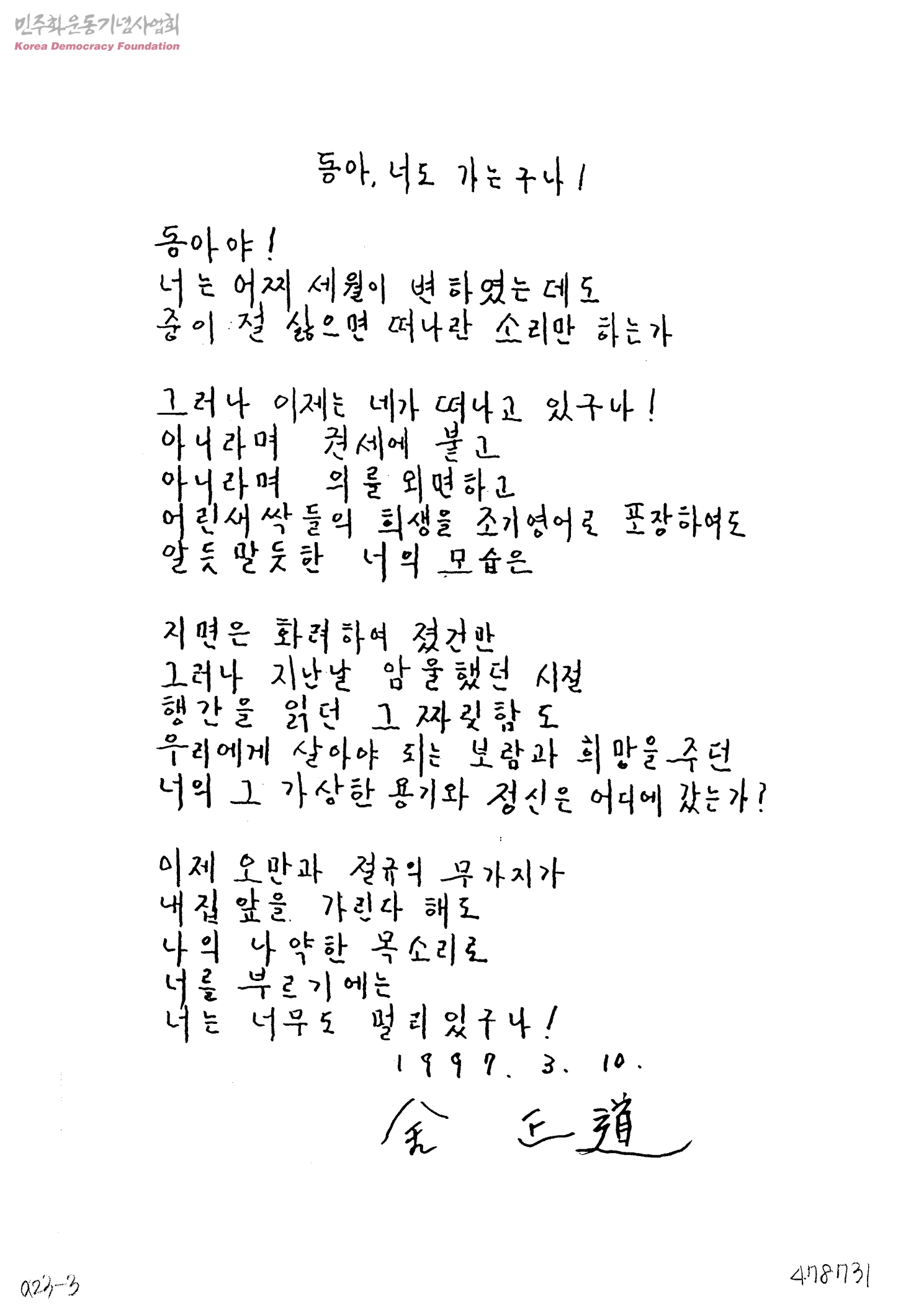 - 생산자 및 기증자가 ‘박용수’인 사진의 사용은 구매신청을 클릭하여 직접 사진 구매 신청을 하실 수 있습니다. 생산자 및 기증자가 ‘경향신문사’인 사진의 사용은 경향신문사 담당자(02-3701-1635)를 통해 구매하실 수 있습니다. 그 외의 생산자 및 기증자는 민주화운동기념사업회 사료관 담당자( hyunchaek@kdemo.or.kr / 02-6440-8961 )에 문의바랍니다.