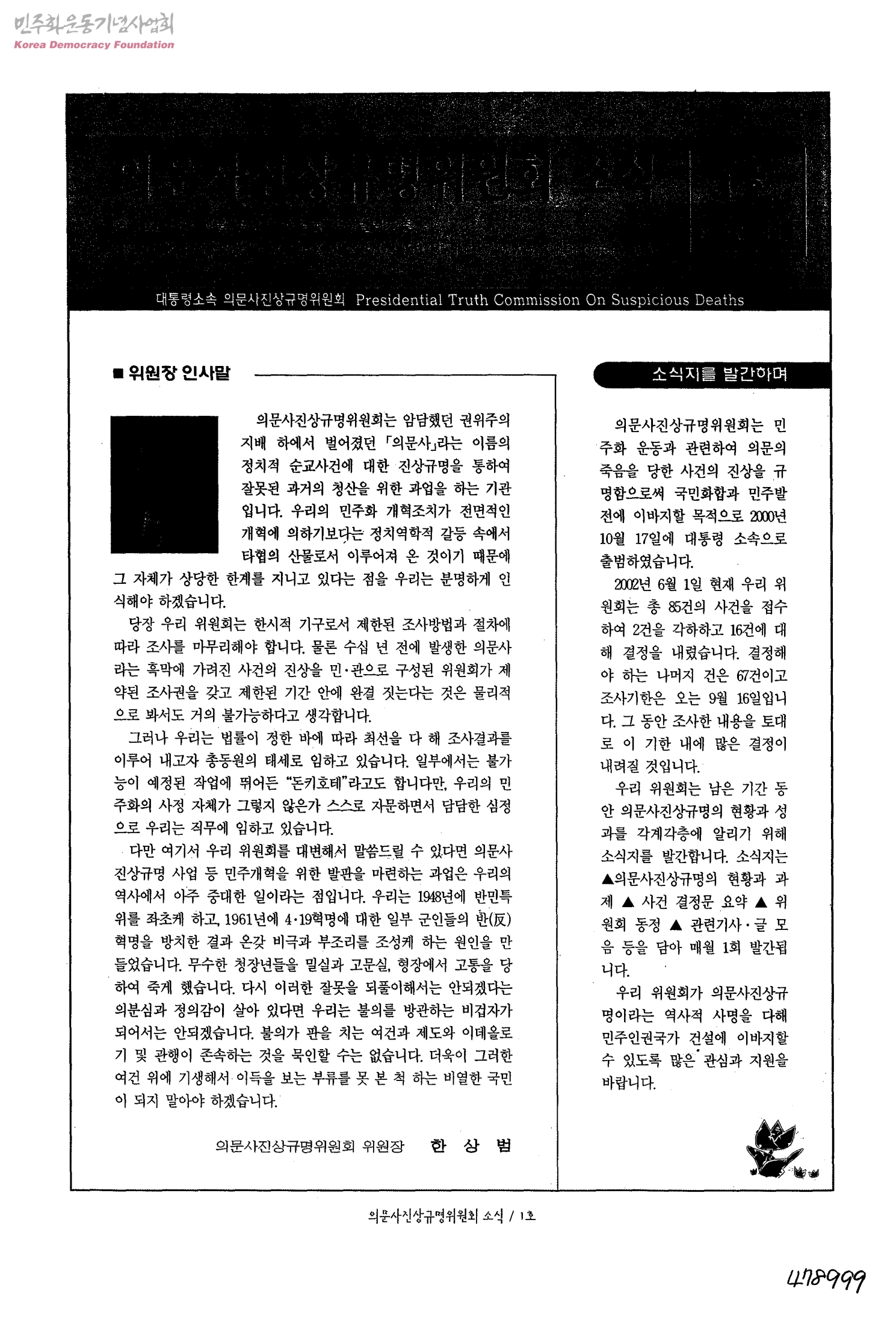 의문사진상규명위원회 소식 1호