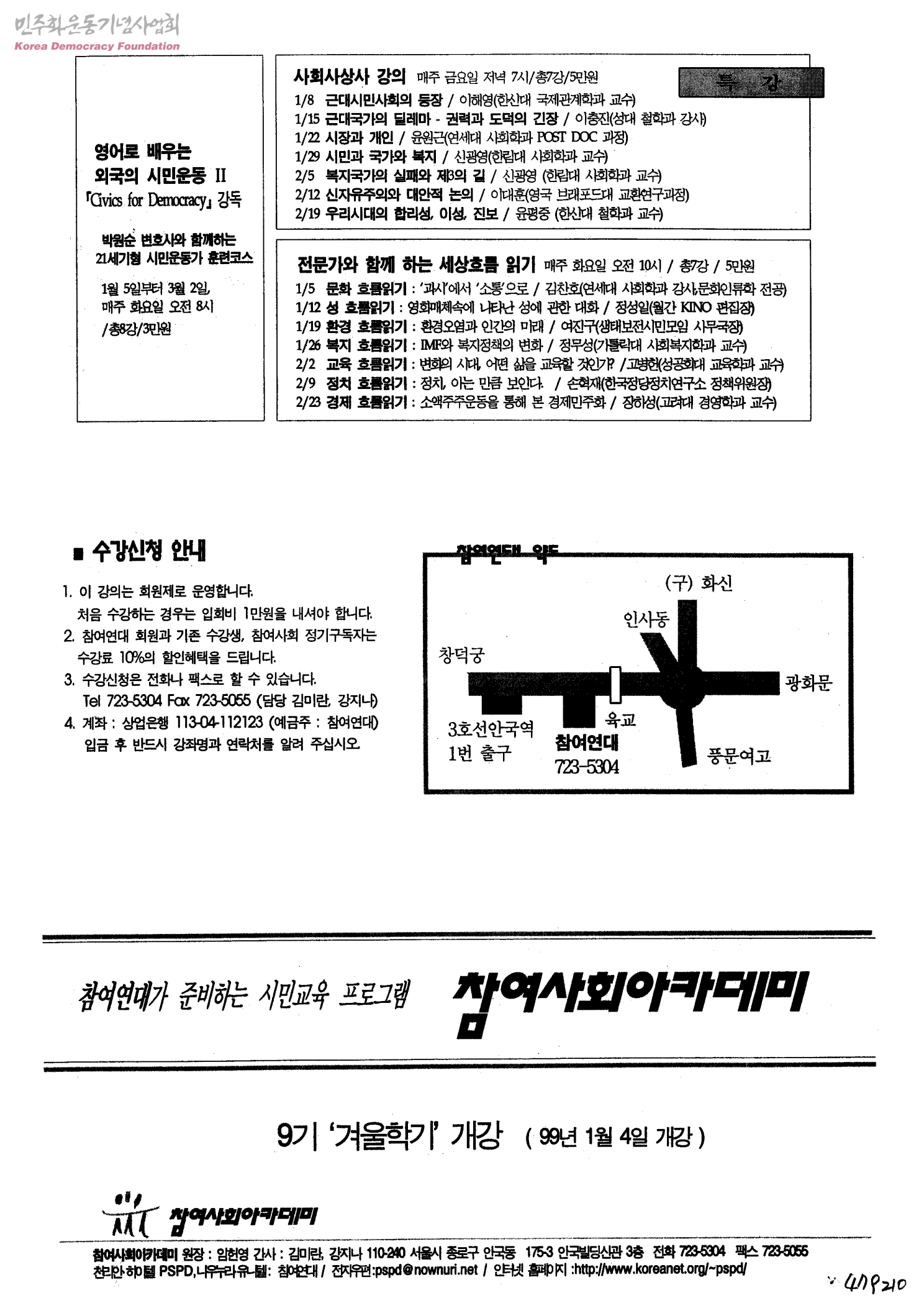 참여연대가 준비하는 시민교육 프로그램 참여사회아카데미 9기 '겨울학기' 개강