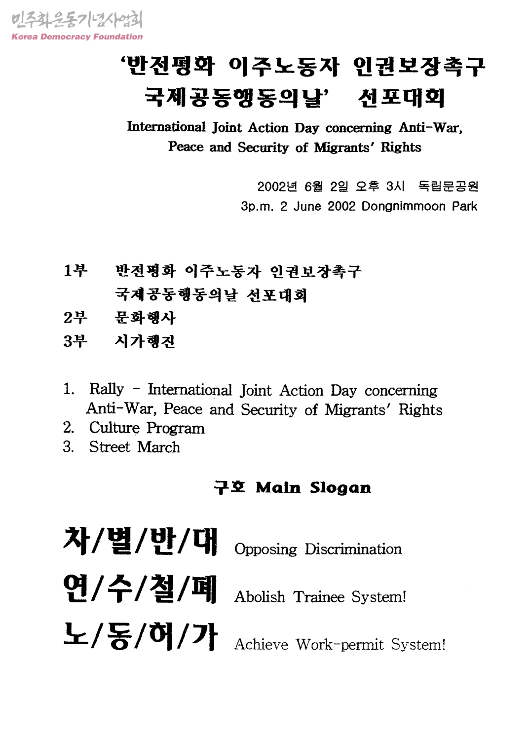 반전평화 이주노동자 인권보장촉구 국제공동행동의날' 선포대회