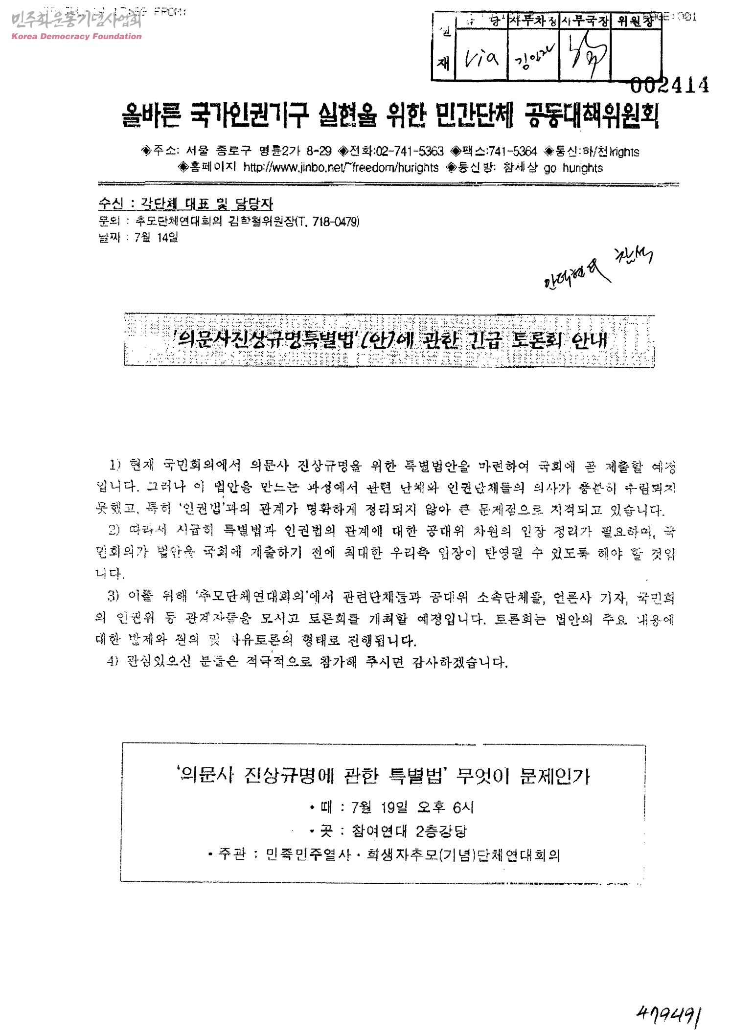 '의문사진상규명특별법'(안)에 관한 긴급 토론회 안내