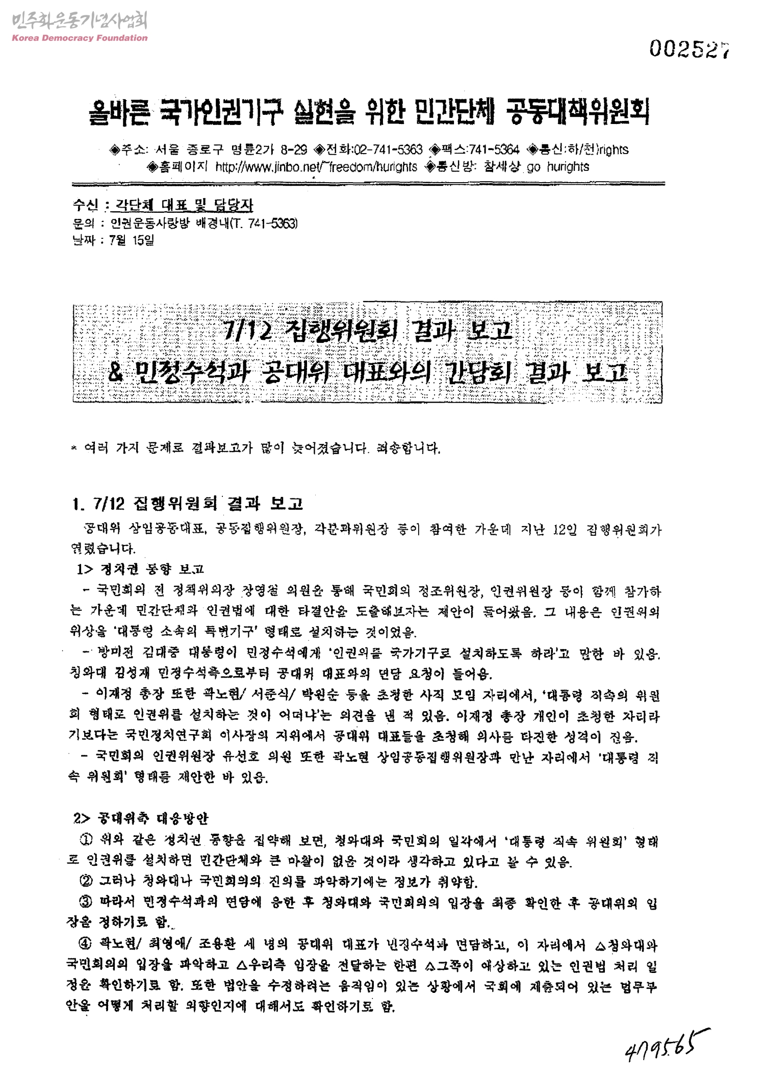 7/12 집행위원회 결과보고 & 민정수석과 공대위 대표와의 간담회 결과 보고[수신:각단체 대표 및 담당자]