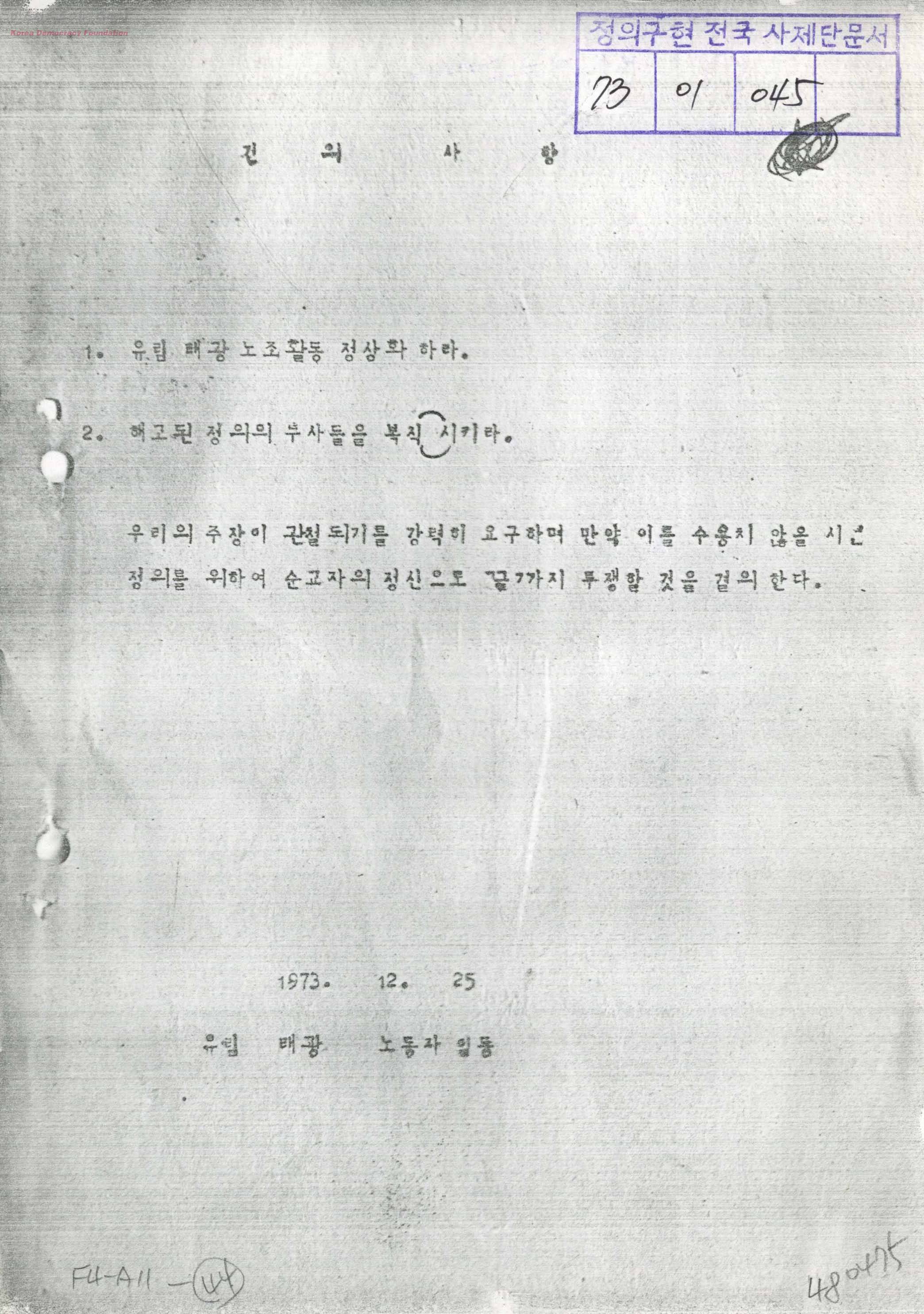 - 유림태광노동자일동