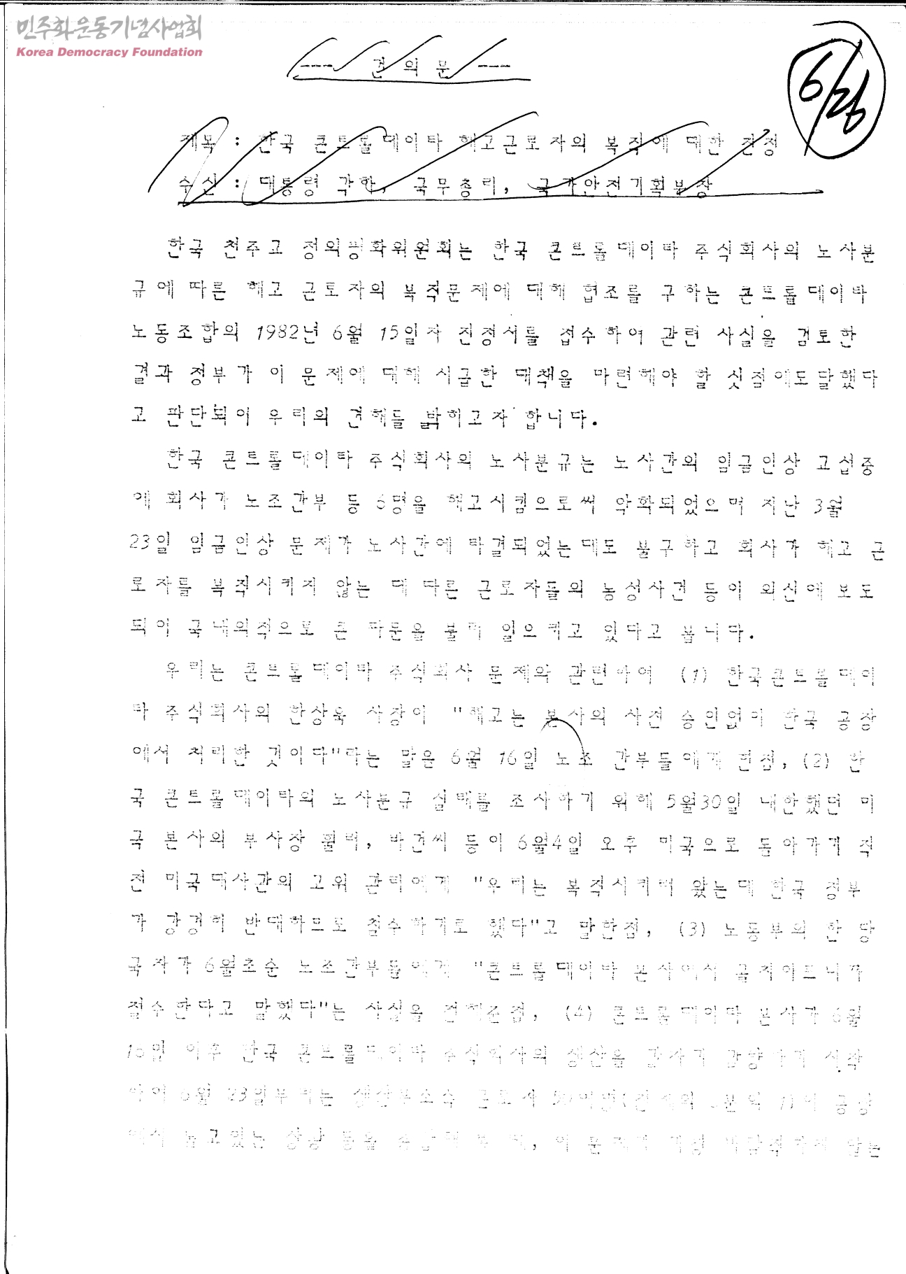 건의문-콘트롤데이타 해고근로자의 복직에 해한 진정