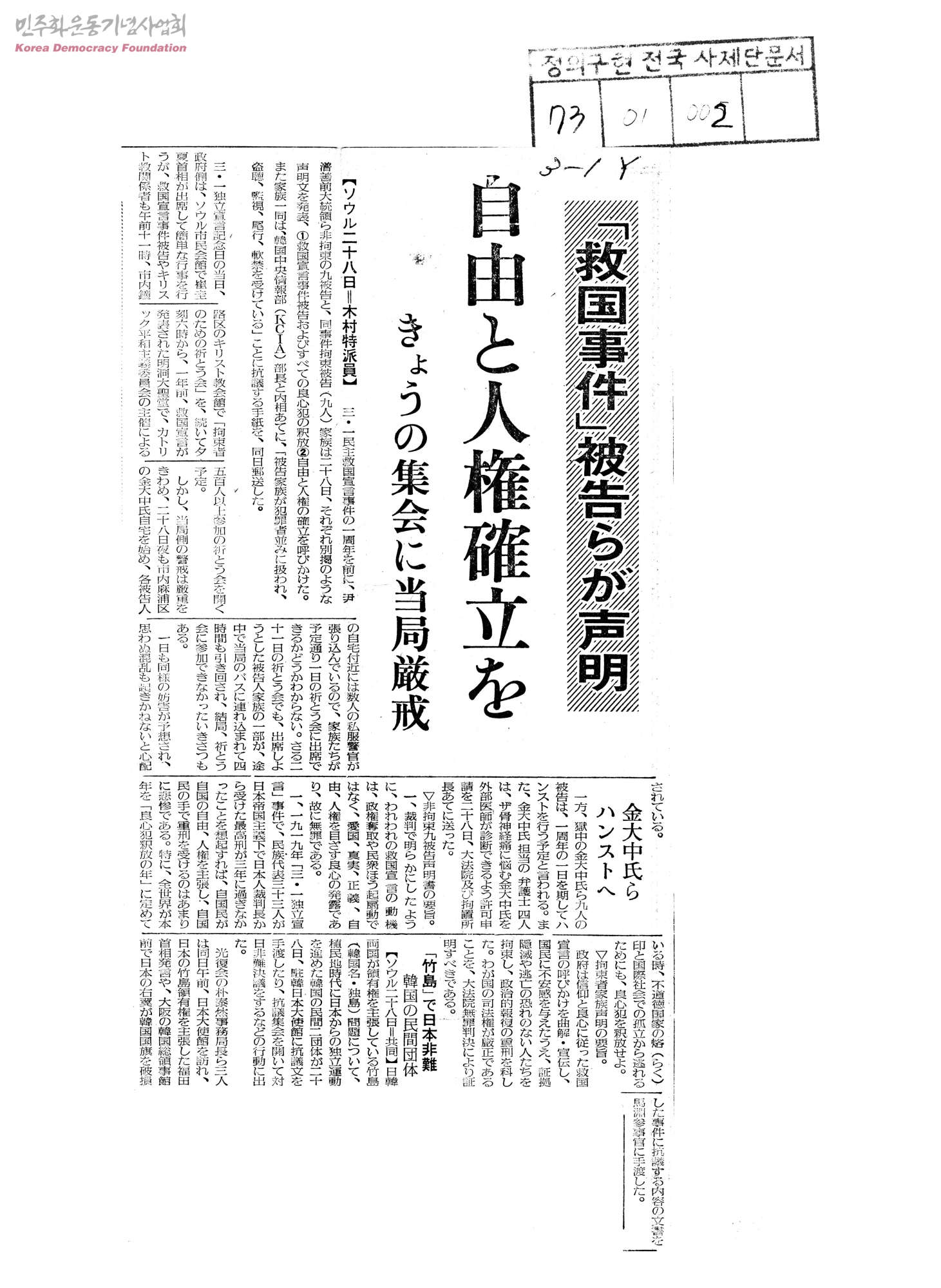 - 생산자 및 기증자가 ‘박용수’인 사진의 사용은 구매신청을 클릭하여 직접 사진 구매 신청을 하실 수 있습니다. 생산자 및 기증자가 ‘경향신문사’인 사진의 사용은 경향신문사 담당자(02-3701-1635)를 통해 구매하실 수 있습니다. 그 외의 생산자 및 기증자는 민주화운동기념사업회 사료관 담당자( hyunchaek@kdemo.or.kr / 02-6440-8961 )에 문의바랍니다.