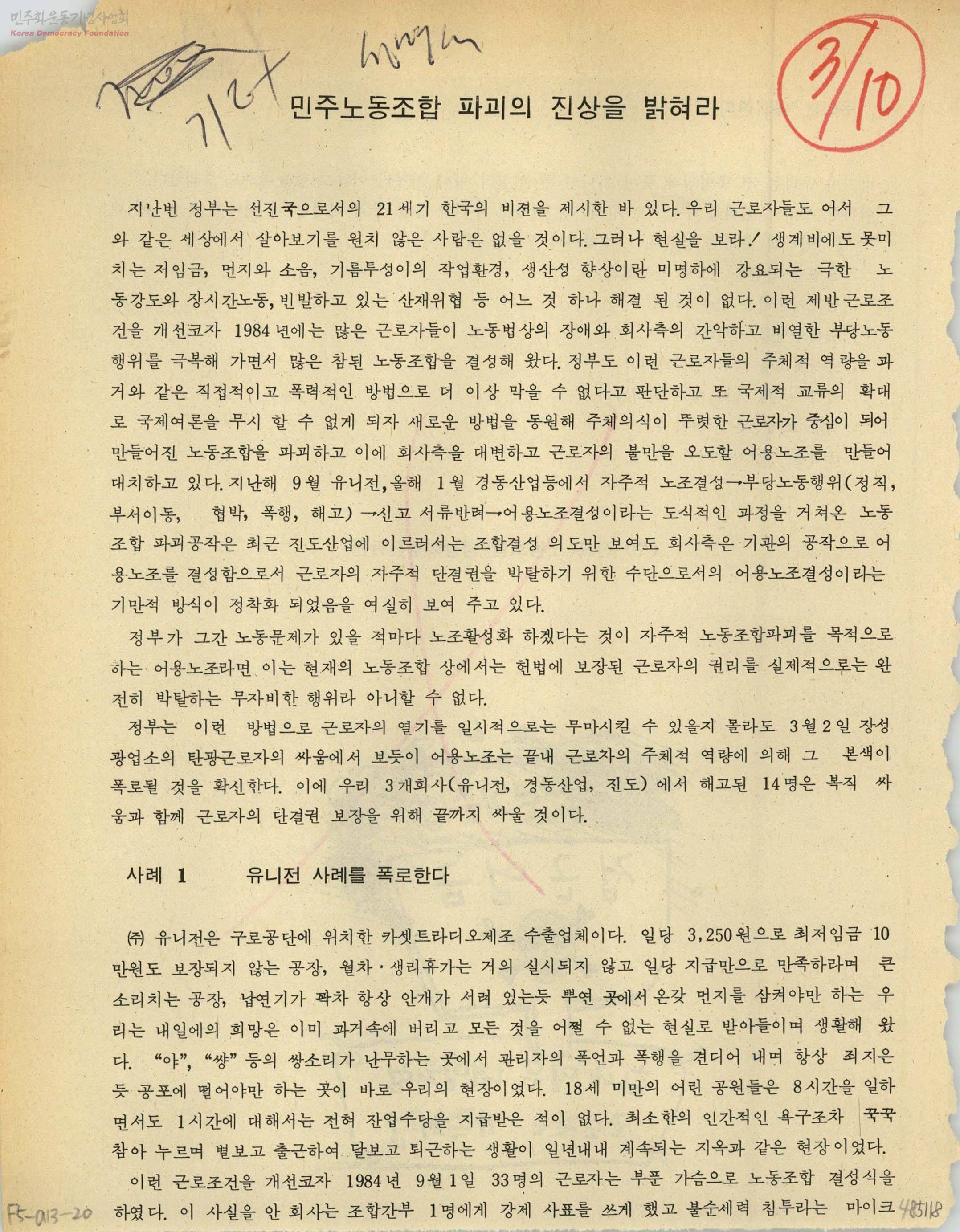 민주노동조합 파괴의 진상을 밝혀라