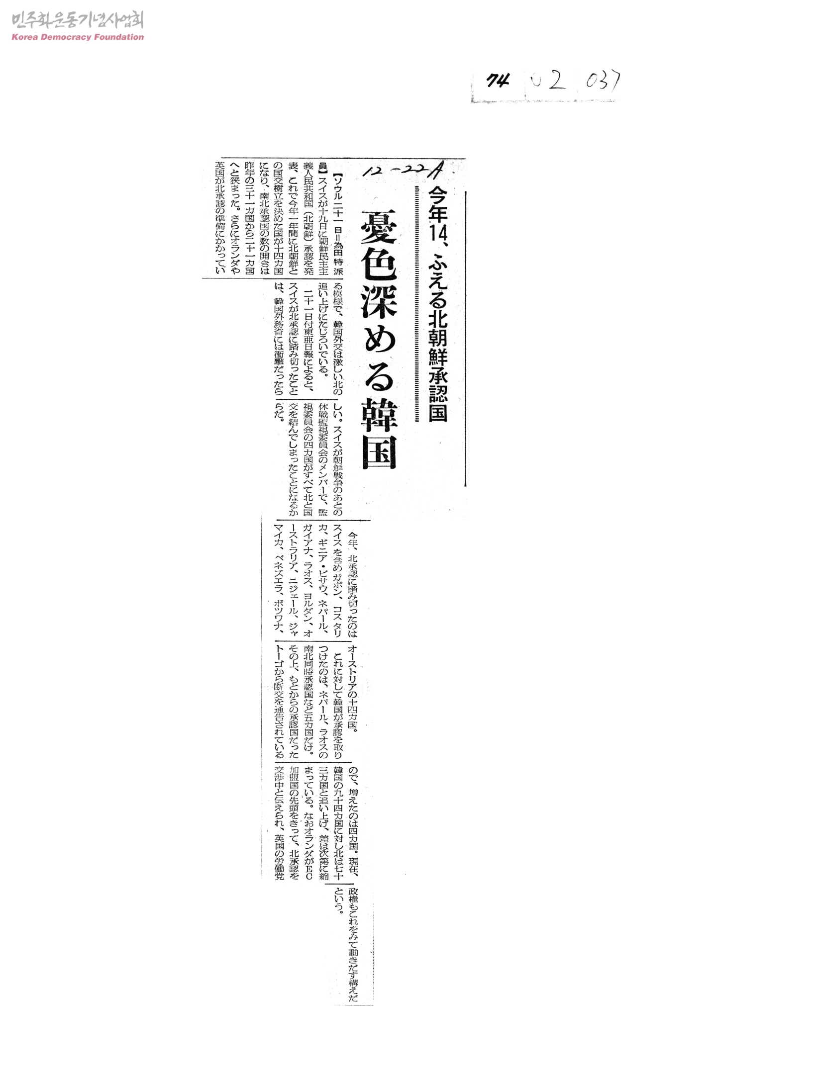 [신문스크랩]今年14, ふえる北朝鮮承認國 - 憂色深める韓國