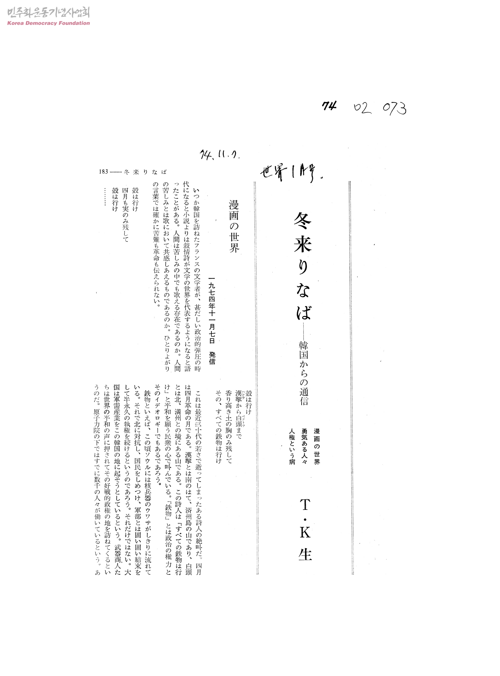 冬來りなば - 韓國からの通信