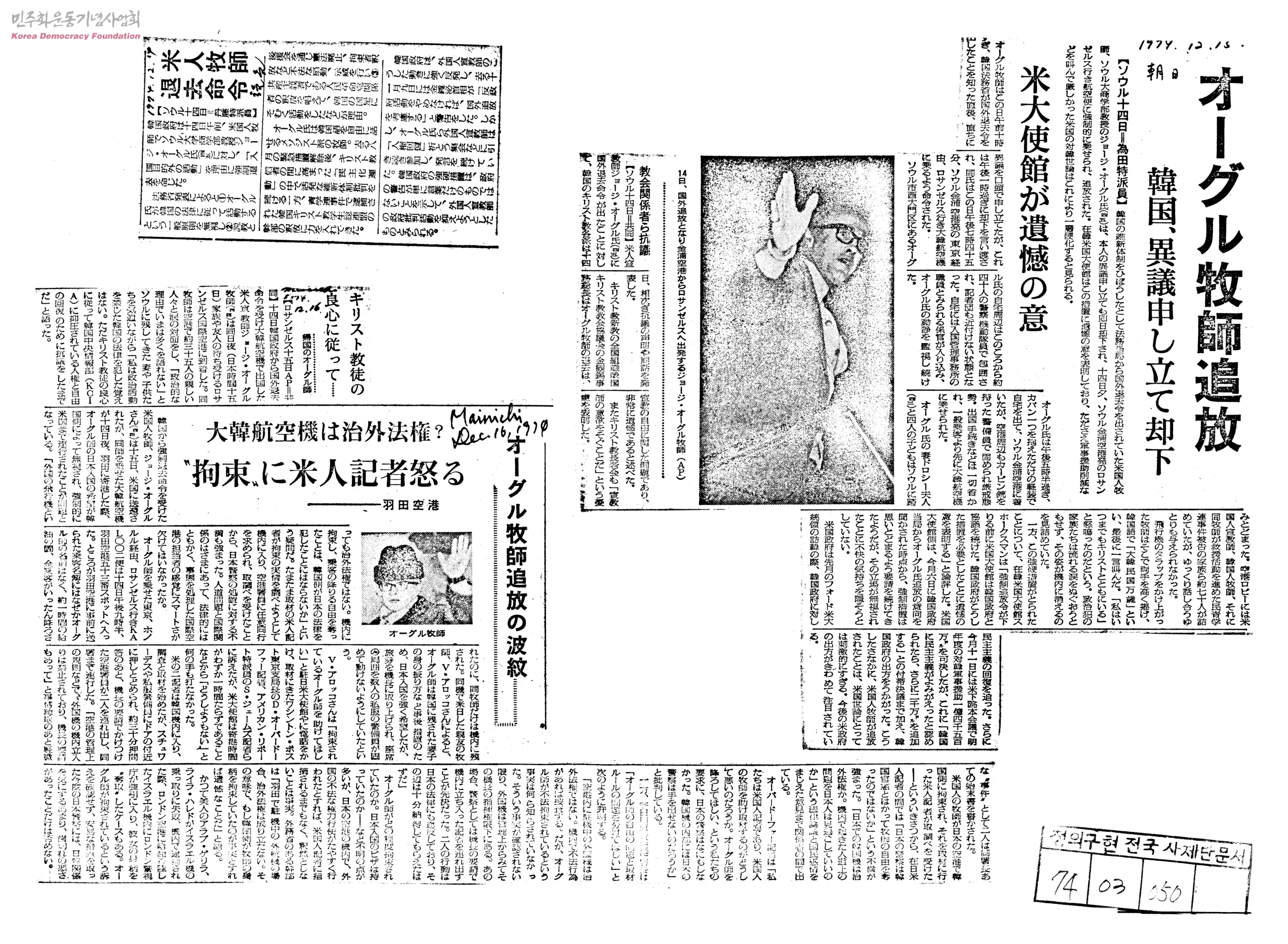 [신문스크랩]オ一グル牧師追放 韓國,異議申し立て却下에 관련 기사
