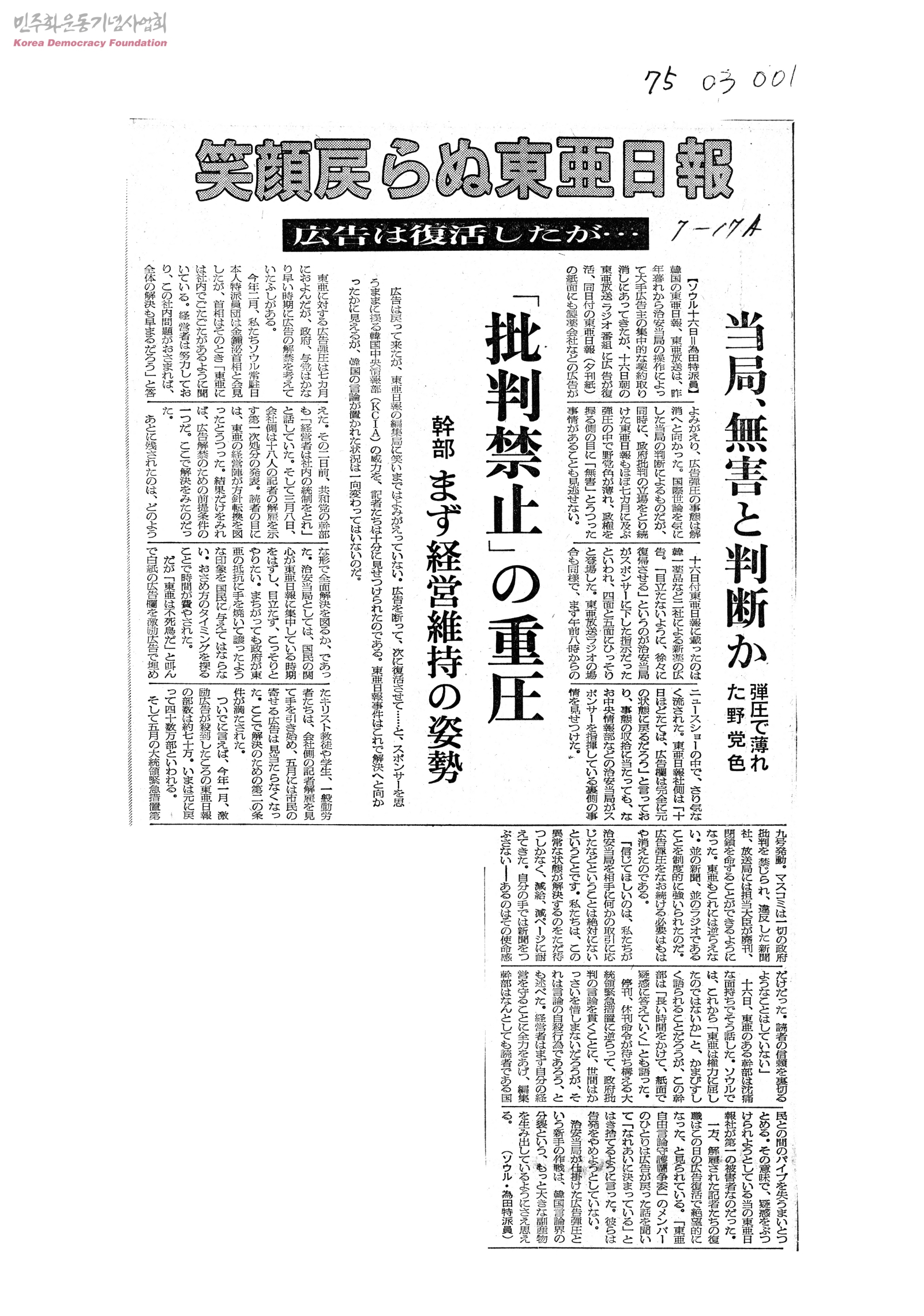 [신문스크랩]笑顔태らぬ東亞日報 - 廣告は復活したが...