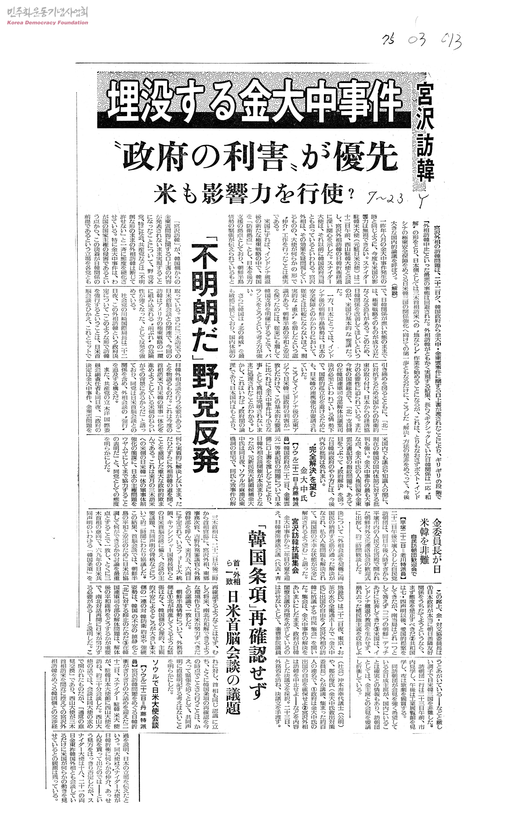 [신문스크랩]埋沒する金大中事件