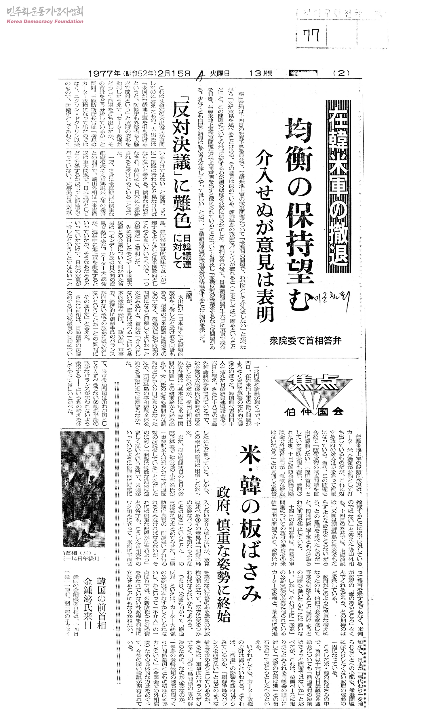 [신문스크랩]在韓米軍の撤退 均衡の保志望む