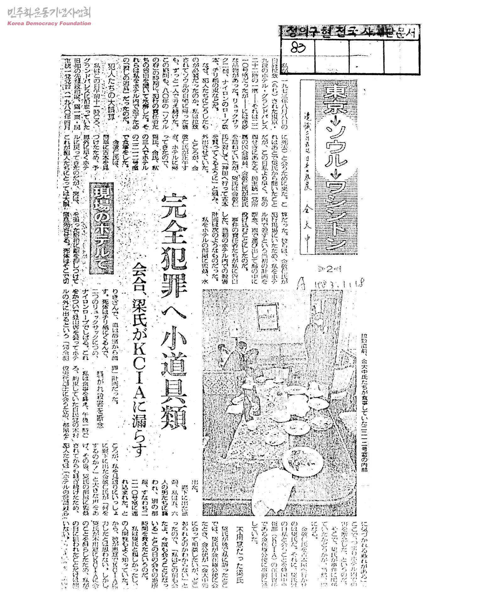 完全犯罪へ小道具類 會合, 梁氏がKCIAに漏らす