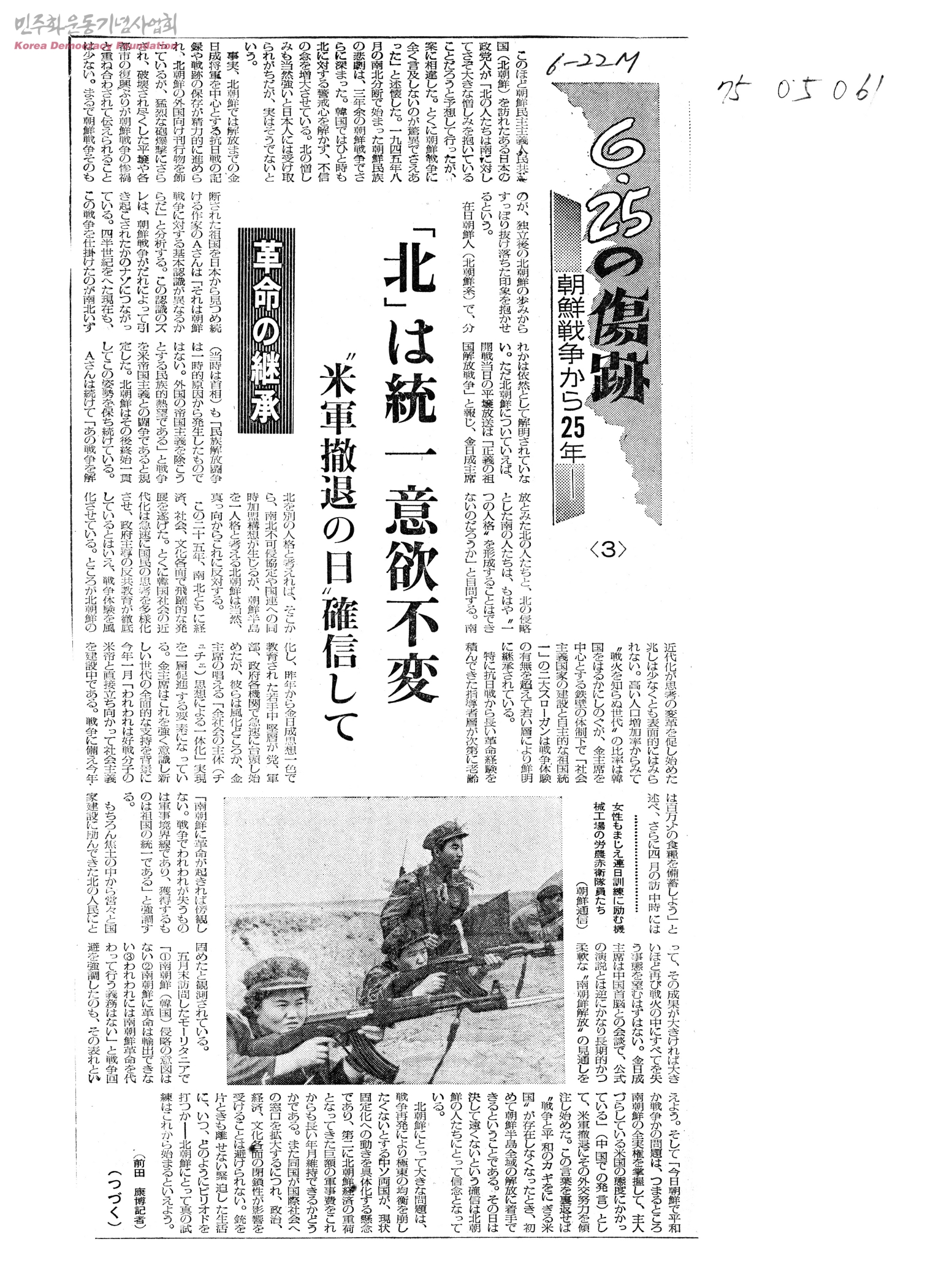 [신문스크랩]6.25の傷跡 朝鮮戰爭から25年<3> -「北」は統一意慾不變