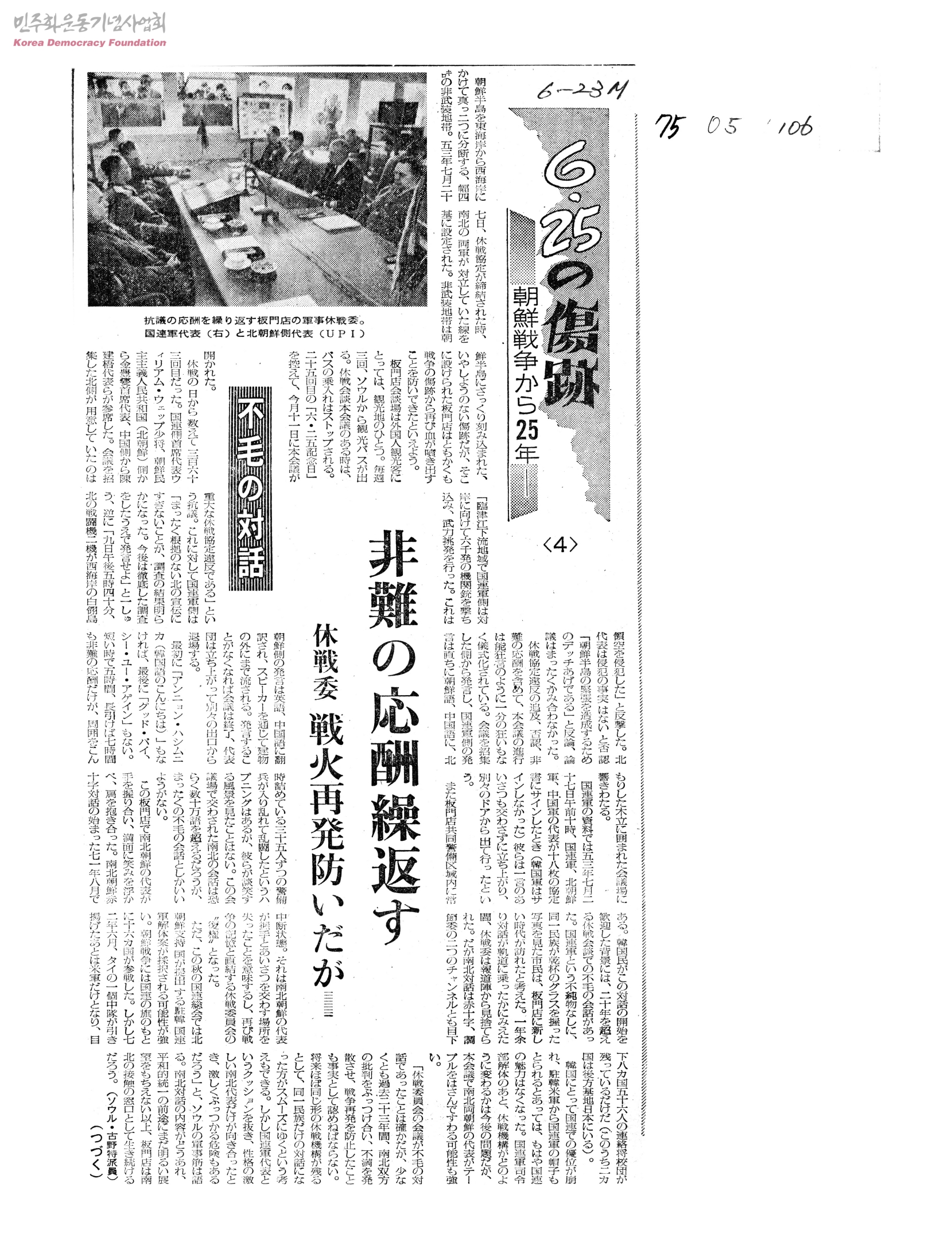 [신문스크랩]6.25の傷跡 朝鮮戰爭から25年<4> - 非難の應酬繰返す
