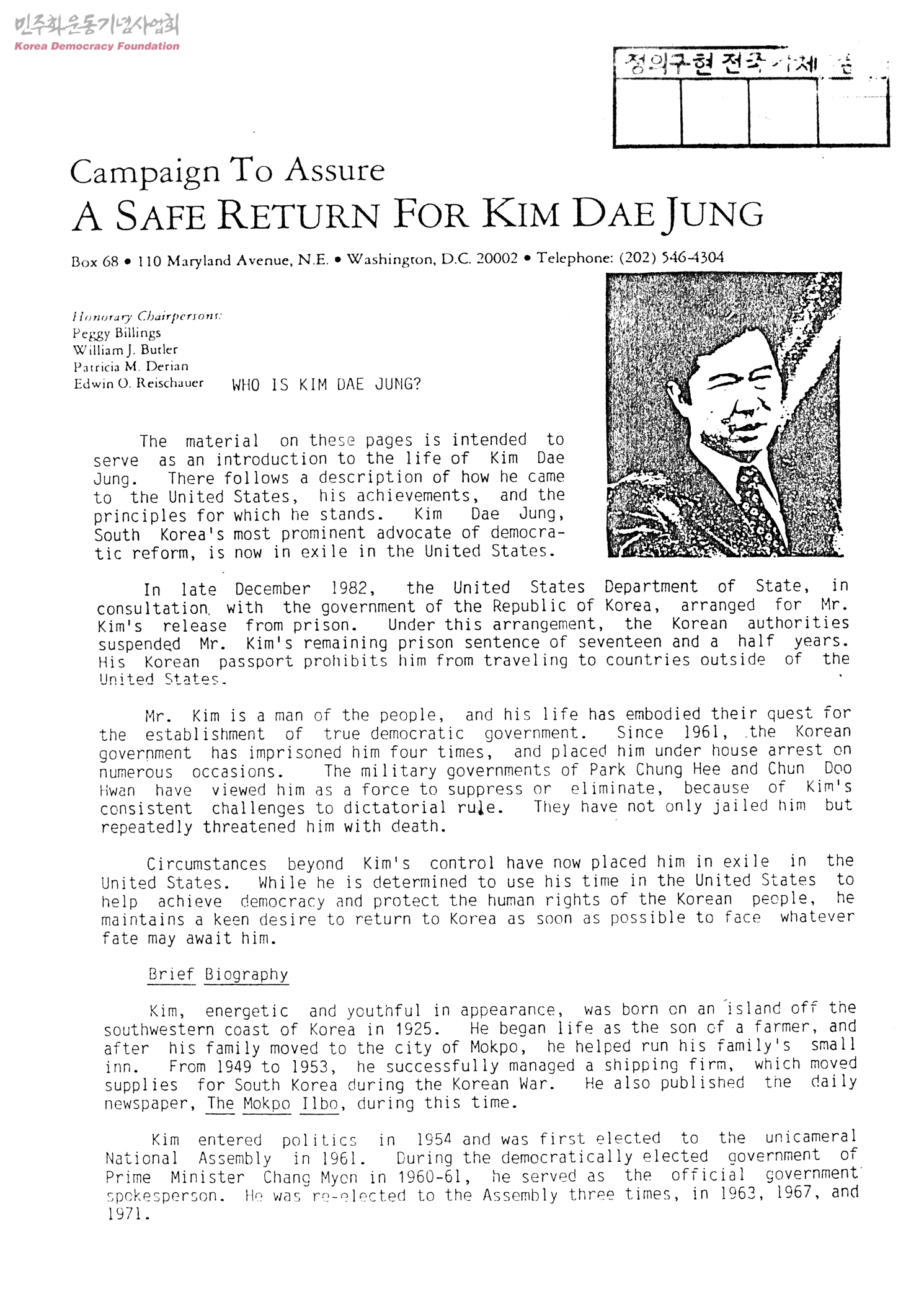 [김대중기사]Campaign To Assure A SAFE RETURN FOR KIM DAE JUNG
