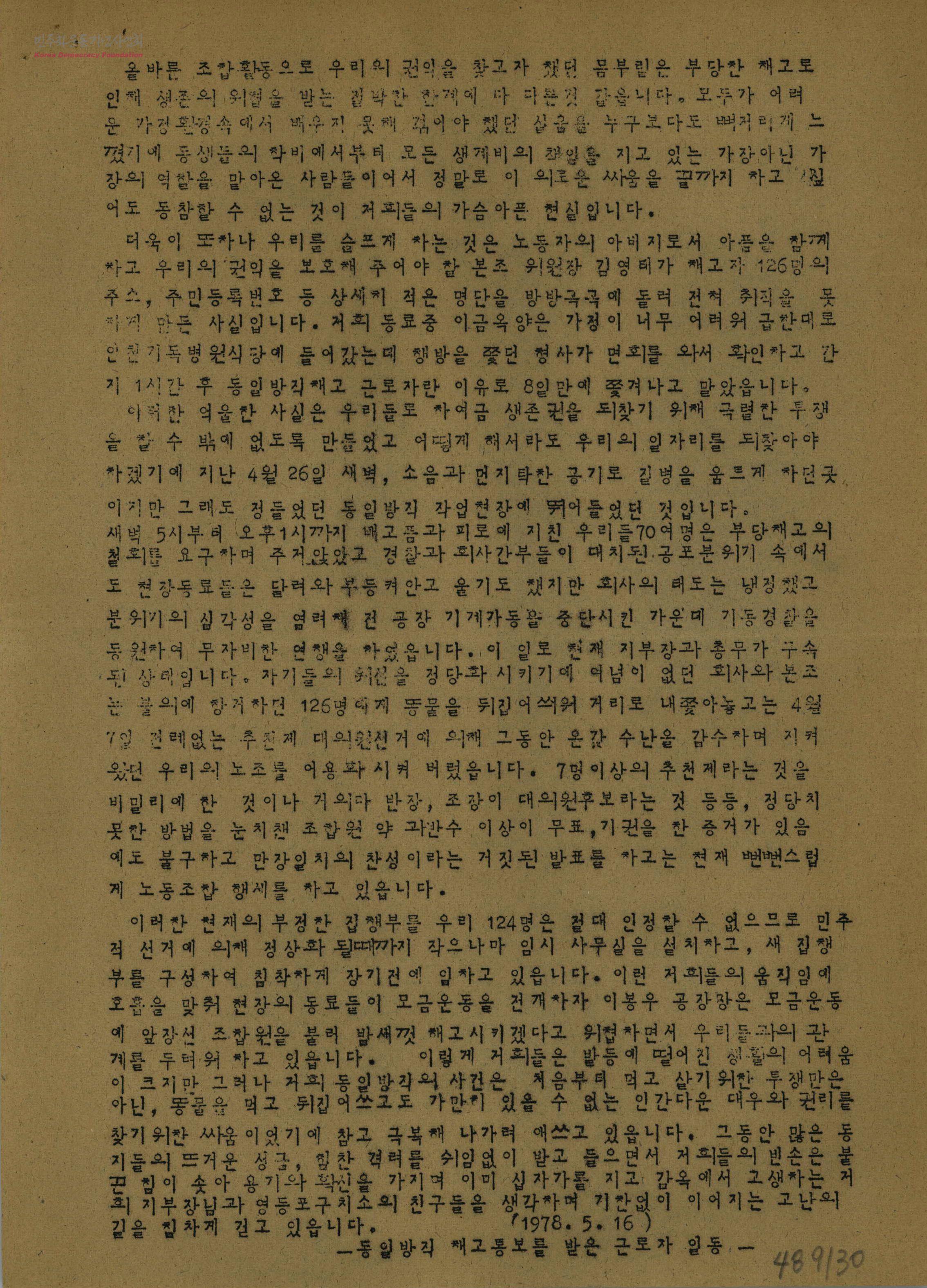 [회사와 본조의 탄압 내용-126명에 대한 블랙리스트를 작성하여 배포한 것과 똥물사건 등]