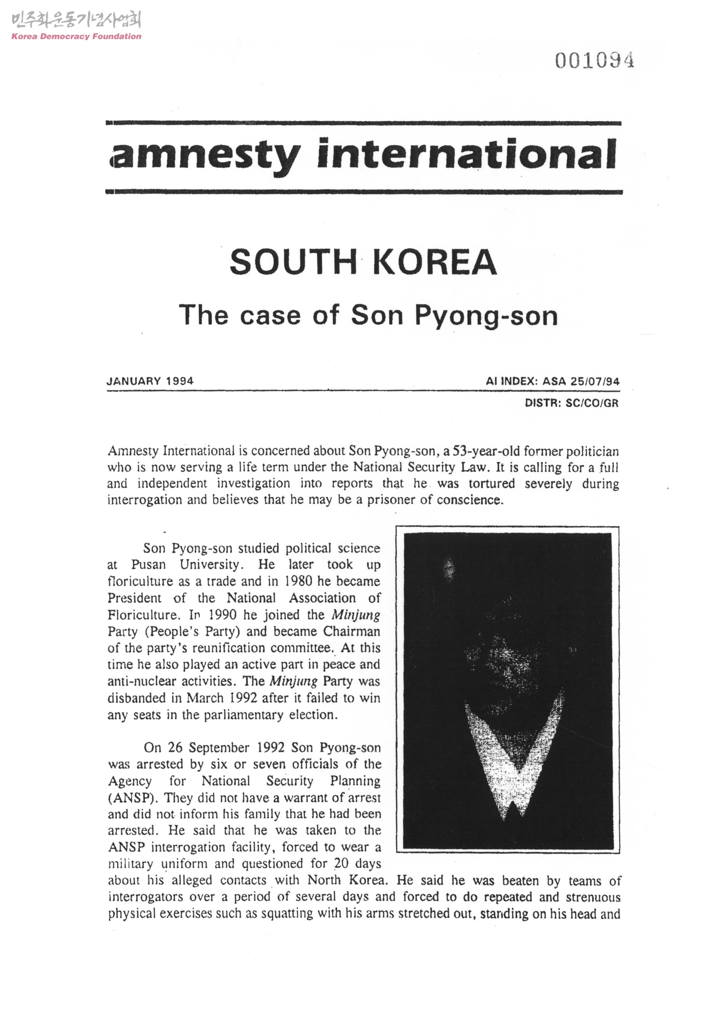 - 국제사면위원회는 국가보안법으로 고초를 겪고 있는 손병선씨에 대한 철저하고 독립적인 조사를 촉구한다
