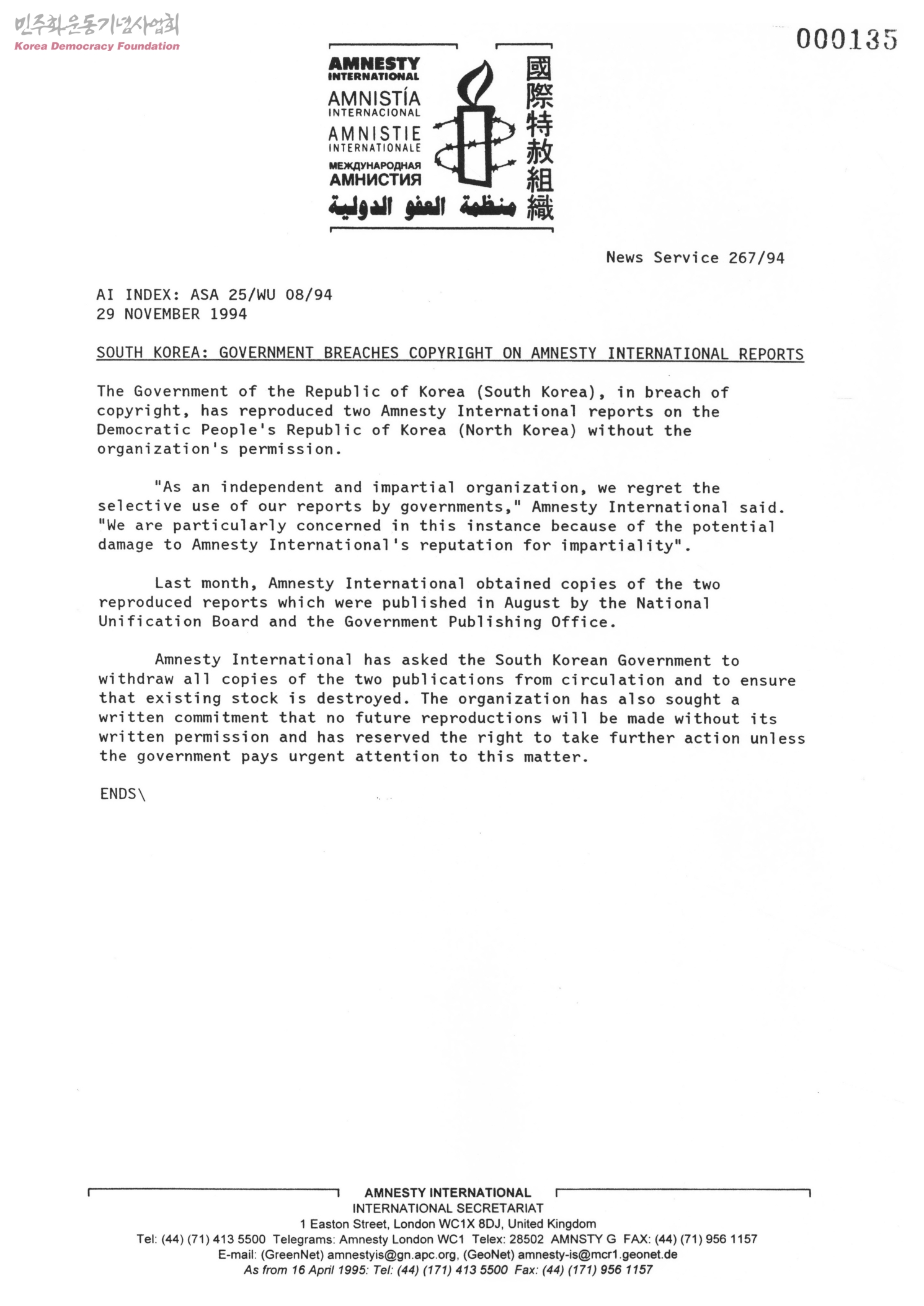 SOUTH KOREA:GOVERNMENT BREACHES COPYRIGHT ON AMNESTY INTERNATIONAL REPORTS