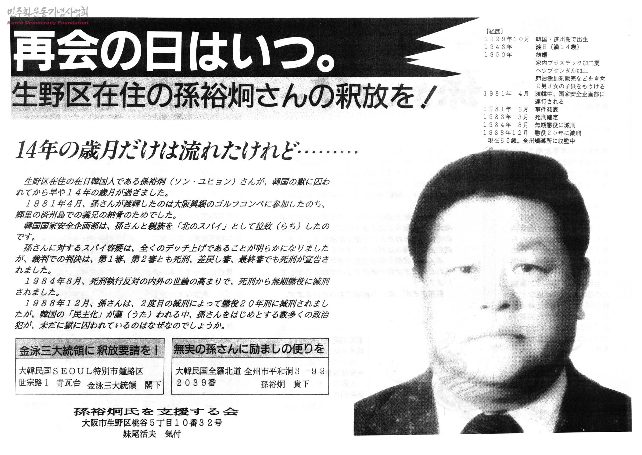 再會の日はいつ-生野區在住の孫裕炯さんの釋放を!