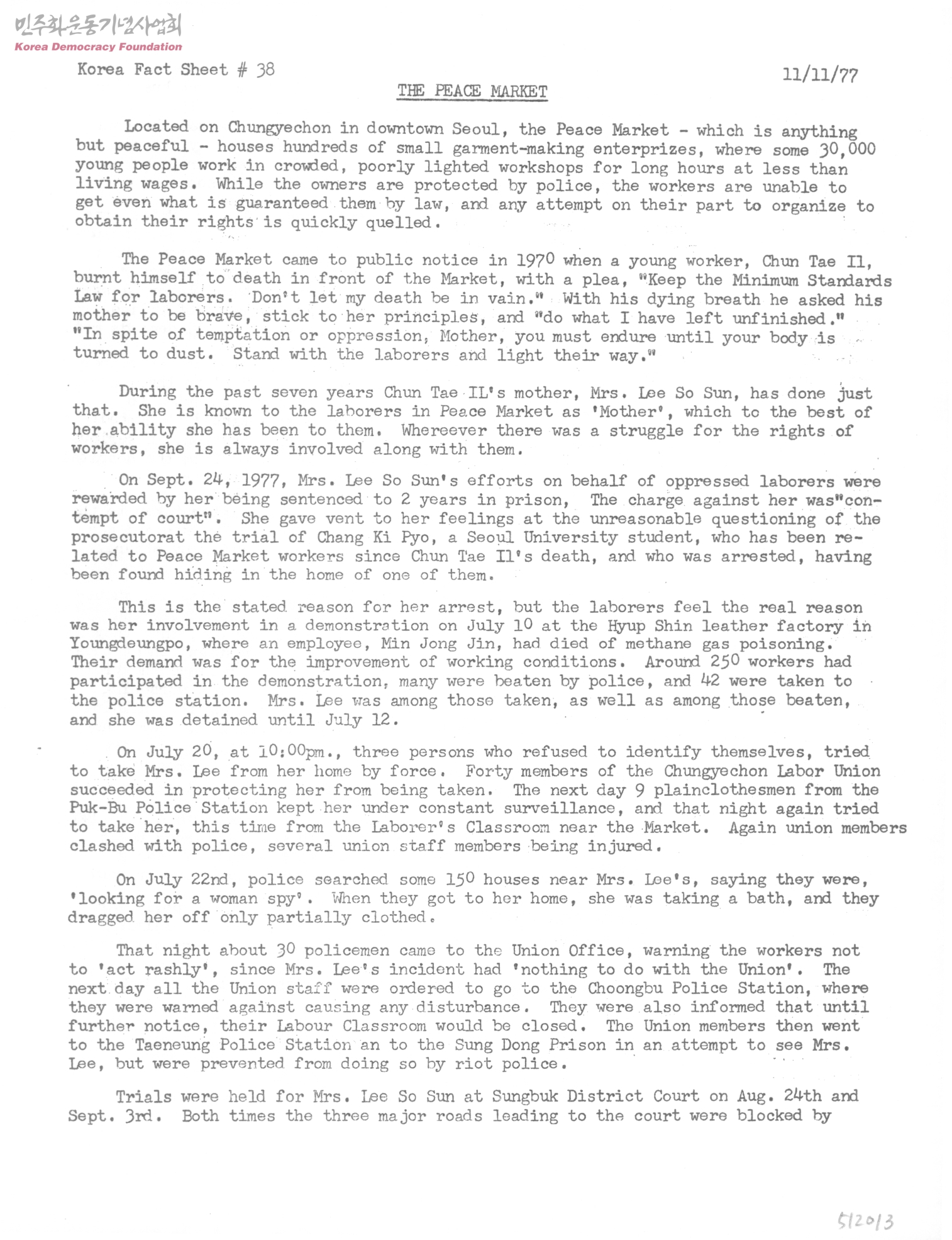 Fact Sheet #38 The Peace Market