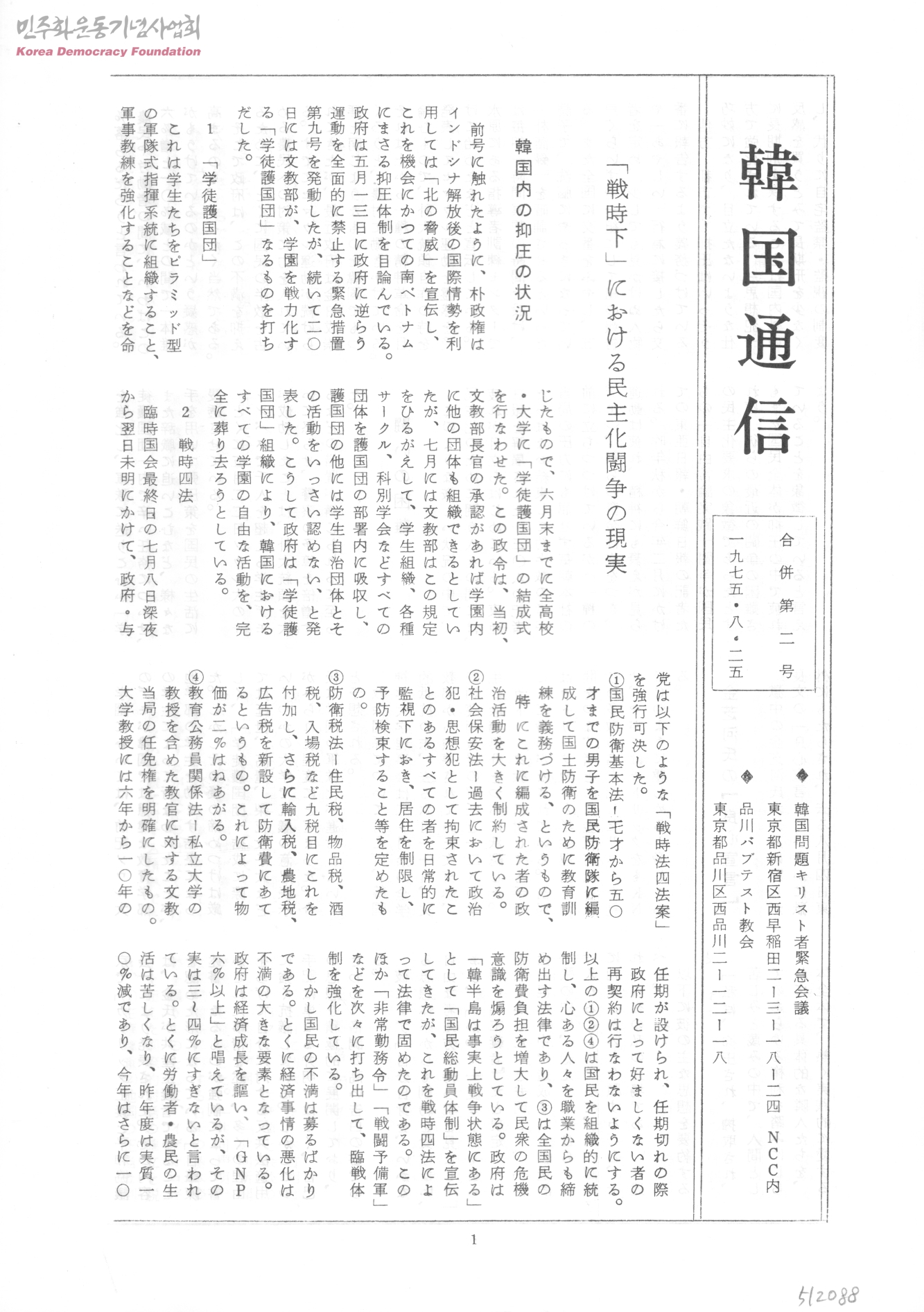 - 韓國問題キリスト者緊急會議