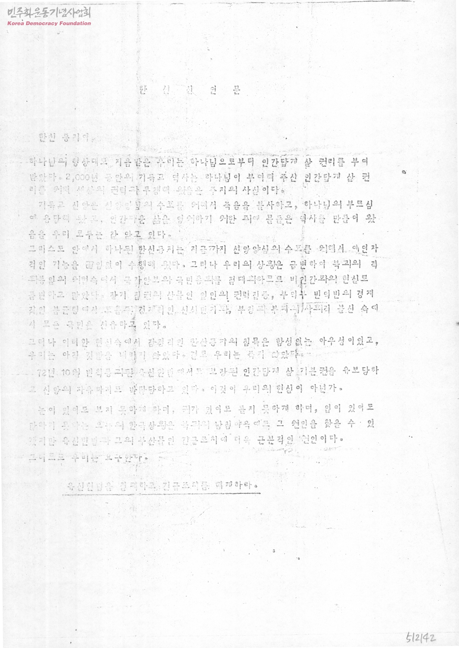 - 유신헌법을 철폐하고 긴급조치를 해제하라. 3.1절 사태에 의해 구속된 인사를 즉각 석방하라. 긴급조치로 구속된 한신가족과 민주인사를 즉각 석방하라.