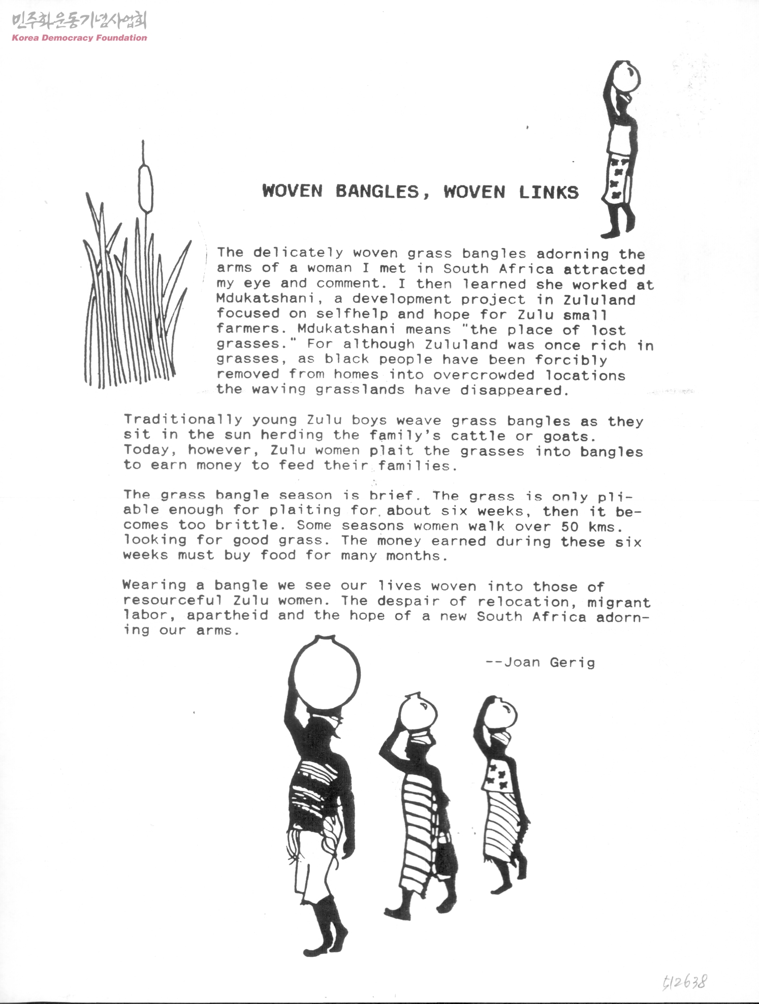 - 'grass bangle'로 가족들의 생계를 책임지는 South Africa 여성들의 삶에 관한 글.