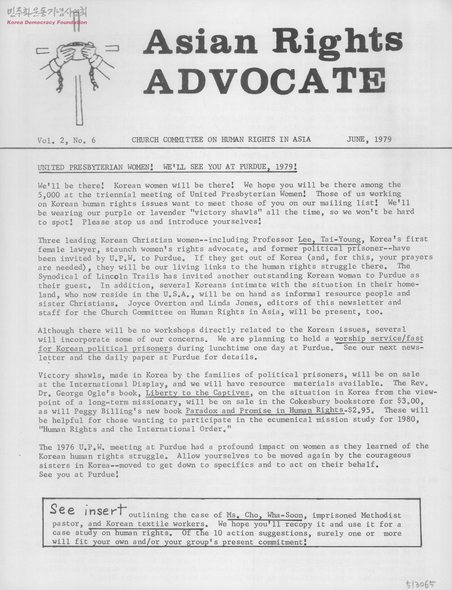 - - United presbyterian women! we'll see you at purdue, 1979! - Actions in Korea, Japan, U.S.A. protest Carter visit to Korea - Action suggestions - Resources 첨부 -Free Cho, Hwa-Soon!.