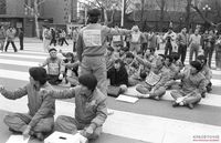 - 민주노조 하자는데 구사대 폭력 웬말이냐 노동운동 탄압하는 노태우 정권 타도하자