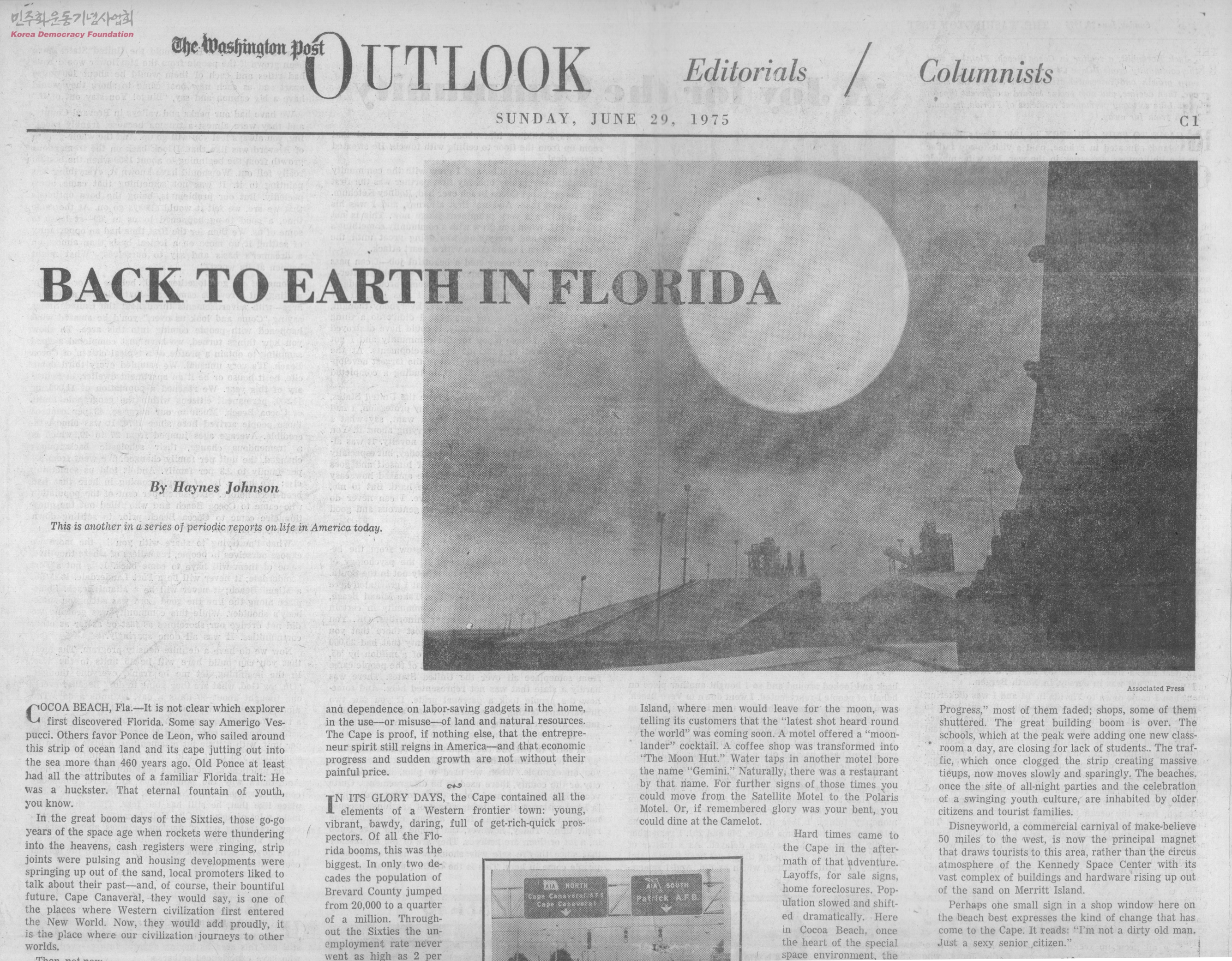 - BACK TO EARTH IN FLORIDA Korea: Progress and Danger A Joy for the Community American Sweat Tooth:Its Bitter After taste The british are coming! Unpredictable Korea A City Risen From the Ashes of War Divided Korea:Pregress and Danger The Latest Veto A squabble in the senate Rebuilding Confidence Ford's Energy Showdown WHAT'S ALL THE COMMOTION ABOUT? Brentano's.