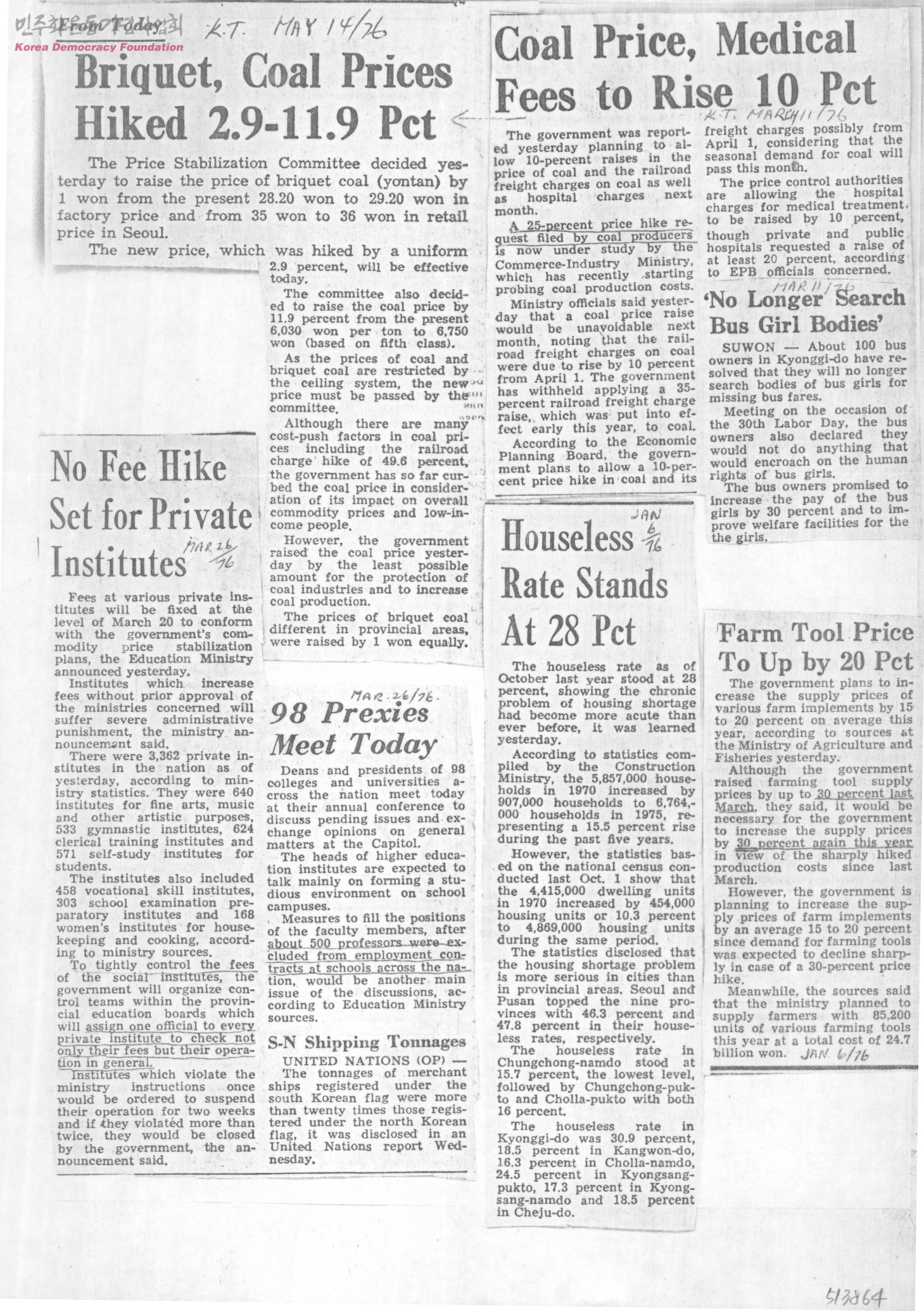 - Briquet, Coal Prices Hiked 2.9-11.9 Pct No Fee Hike Set for Private Insyitutes Houseless Rate Stands At 28 Pct