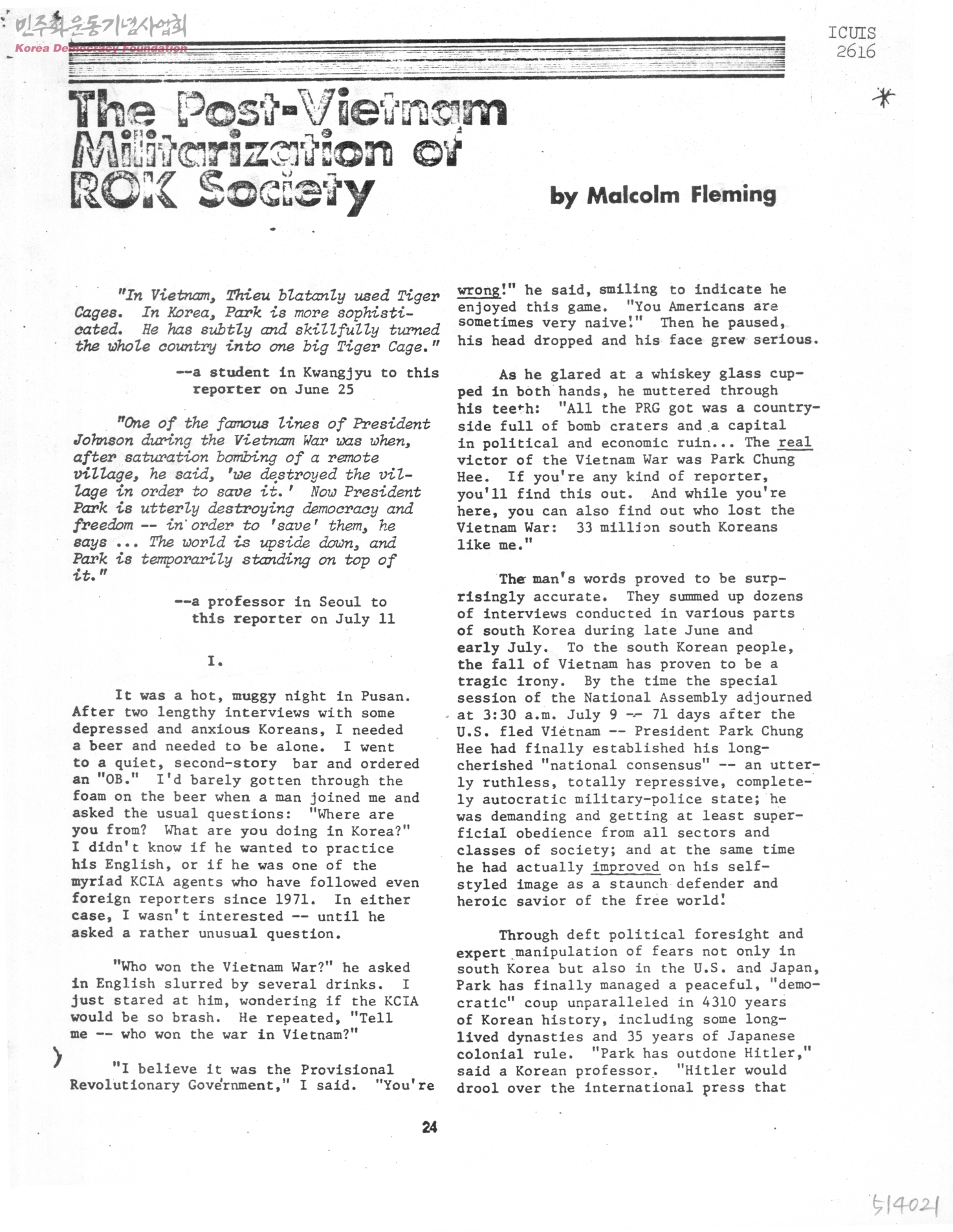 The Post-Vietnam Militarization of ROK Society